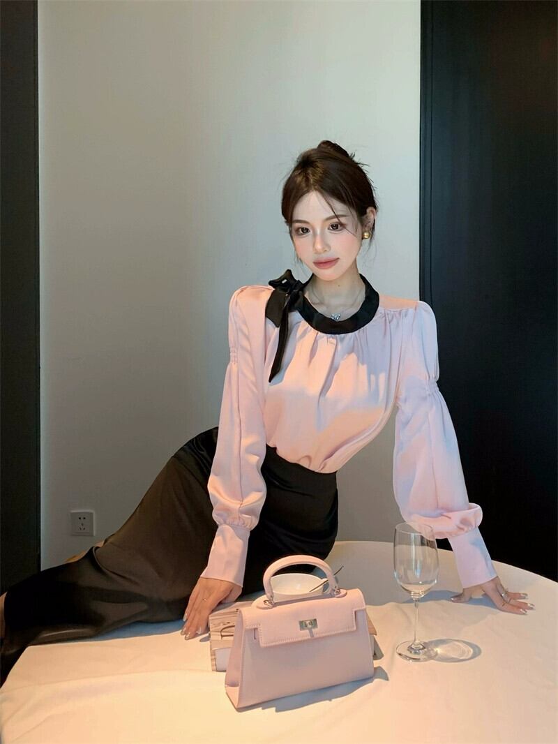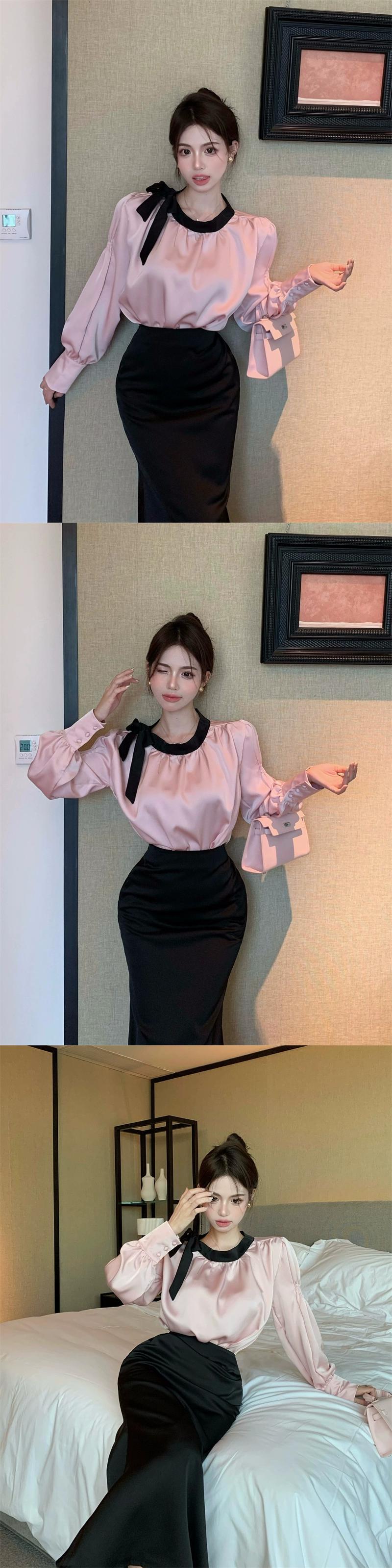 軽くて高級な社交界の気質のスーツ、ウエストを締める長袖シャツ、ハイウエストヒップカバーハーフレングススカート、2点セットの女性、初秋の新しいスタイル ロング オータム 秋物 nana14919732672 | modepoisson