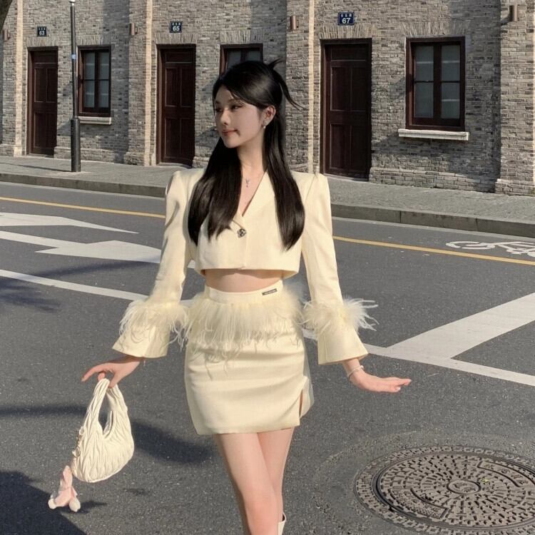 金持ちの娘のスーツスカート、短い長袖スーツジャケット、ヒップカバーハーフスカート、小さな香りの秋の2点セット女性 ショート ロング オータム 秋物 nana748670250 | modepoisson