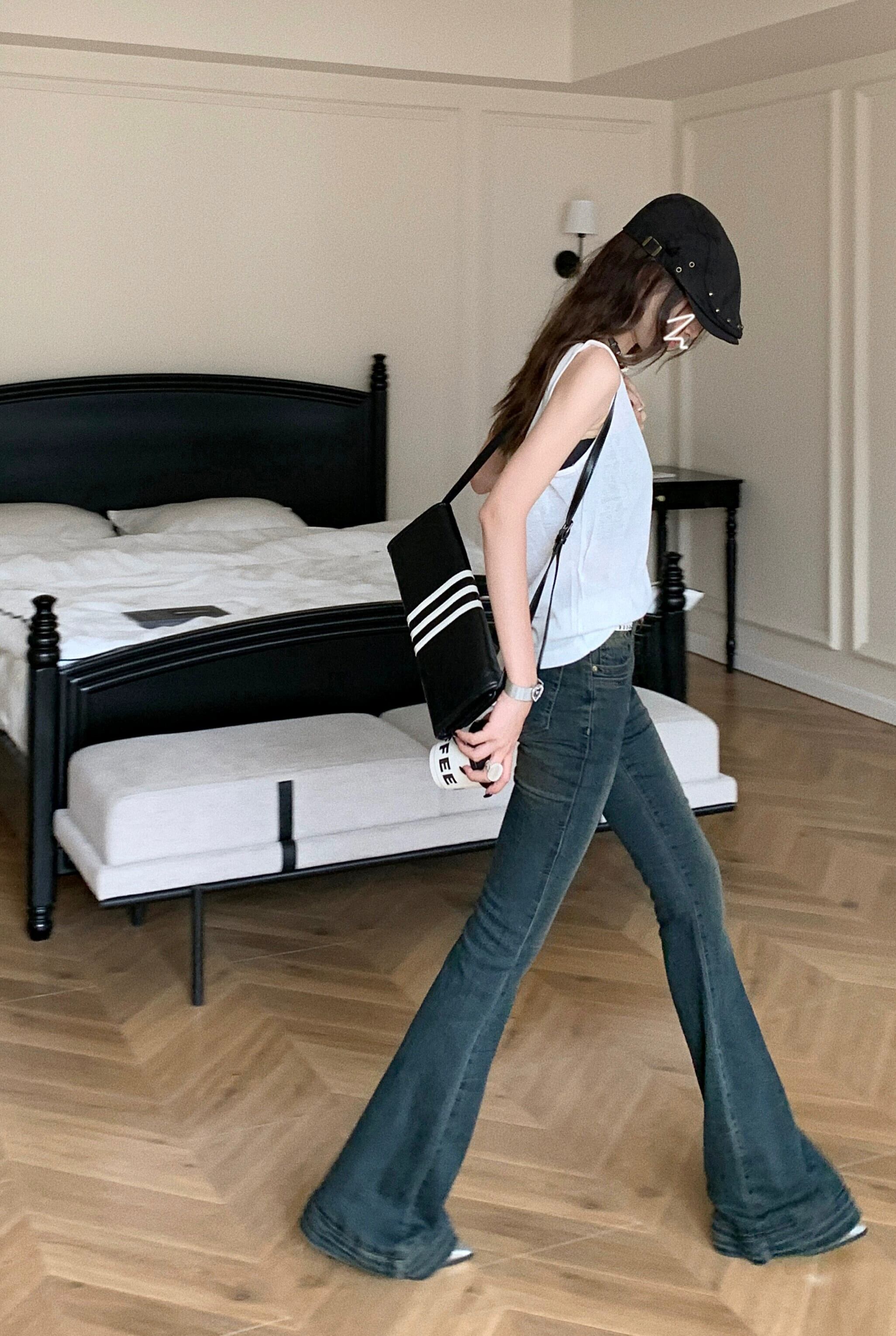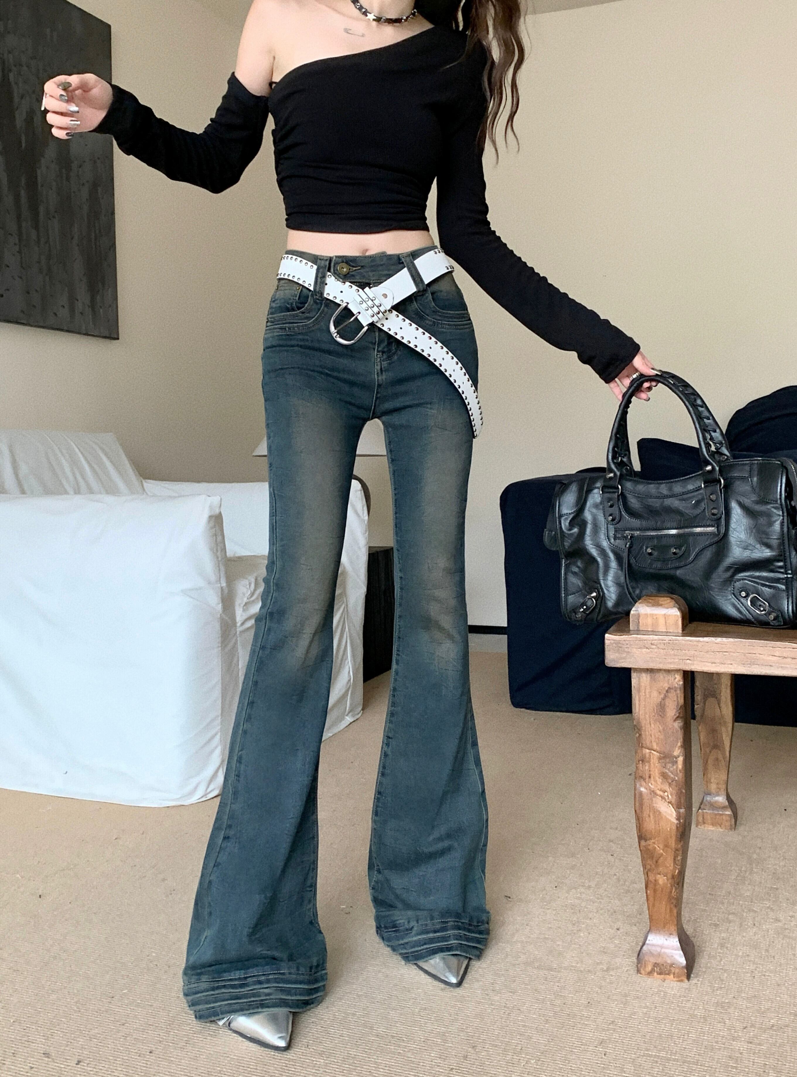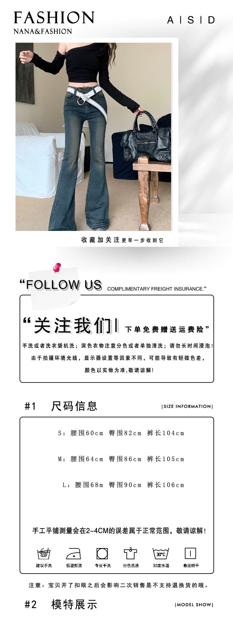 -ウエストレトロブーツカットパンツストレートレッグ2023秋新作多用途スリムフィットストレッチワイドレッグジーンズレディース オータム 秋物 nana62080834806 | modepoisson