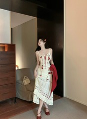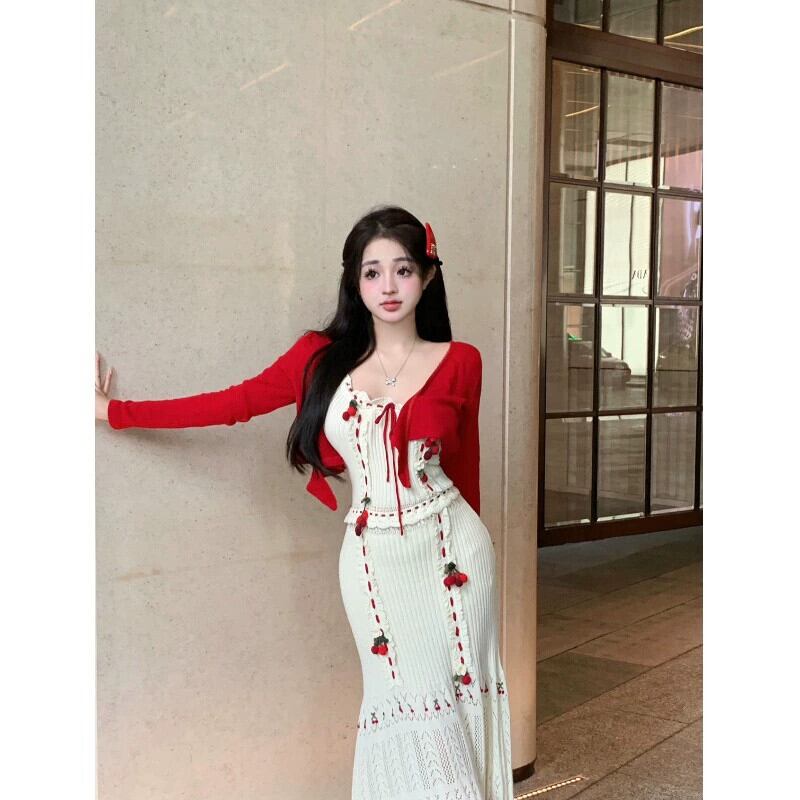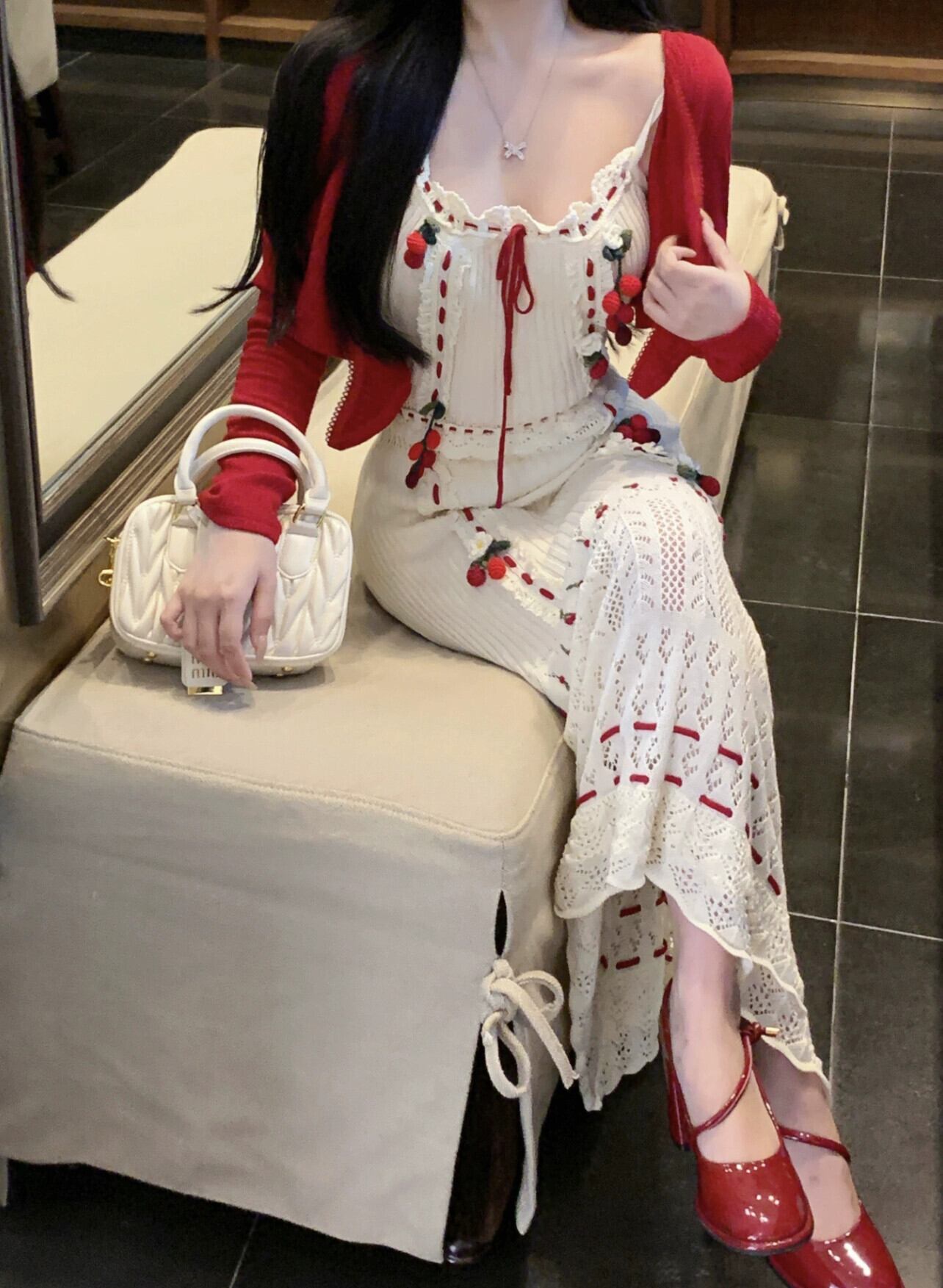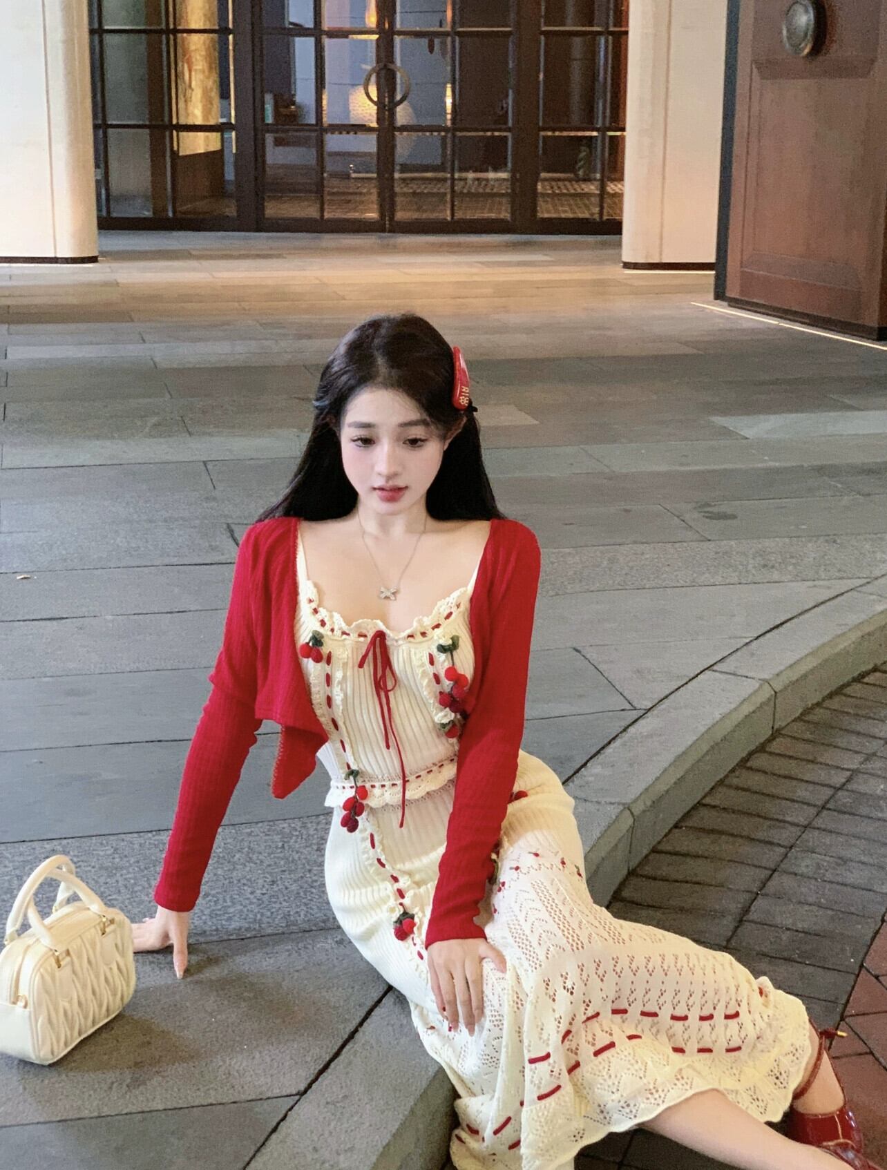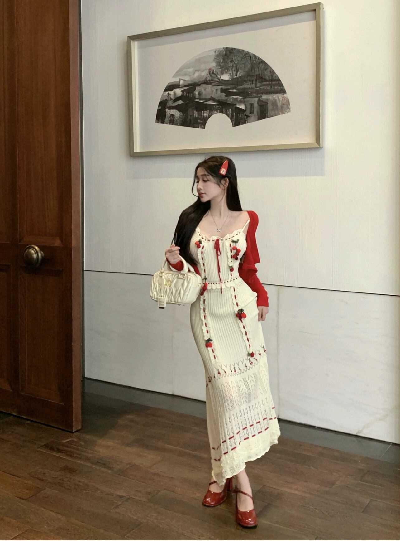 甘辛スリムスーツedサスペンダードレスレディース初秋風気質2点セット厚手のニットカーディガン 大人ガーリー スウィート キュート カジュアル オータム 秋物 nana14728935460 | modepoisson