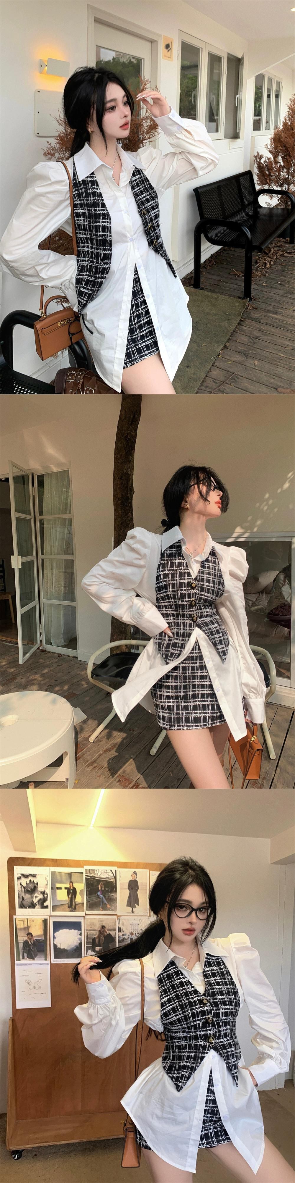 スーツ 2023 新しいヨーロッパスタイルの小さな香りスタイルチェック柄ベストシャツハーフレングスショートスカート初秋の 3 点セット女性 オータム 秋物 ヨーロピアン nana4213812629 | modepoisson