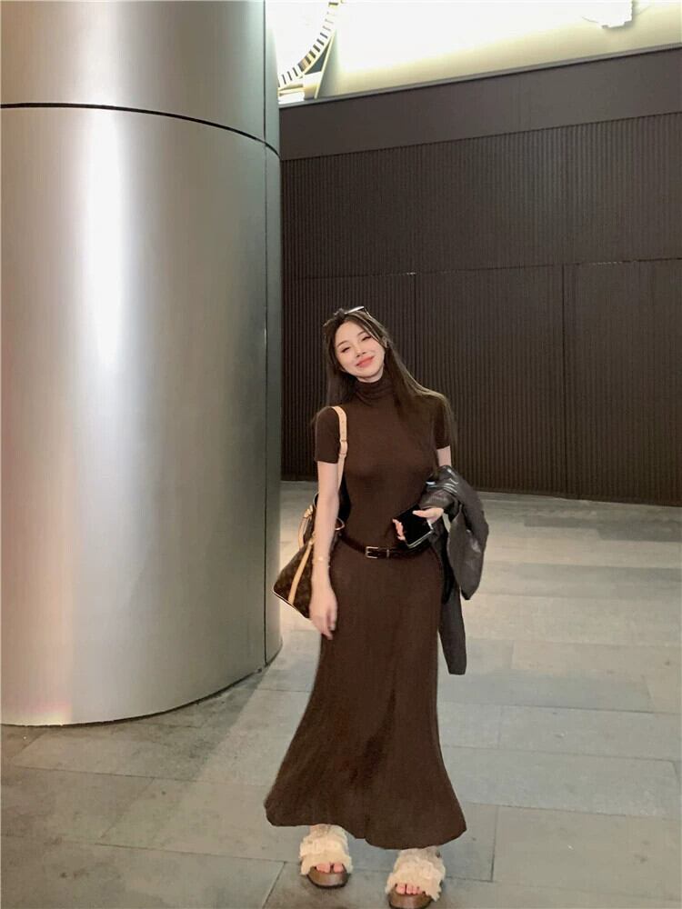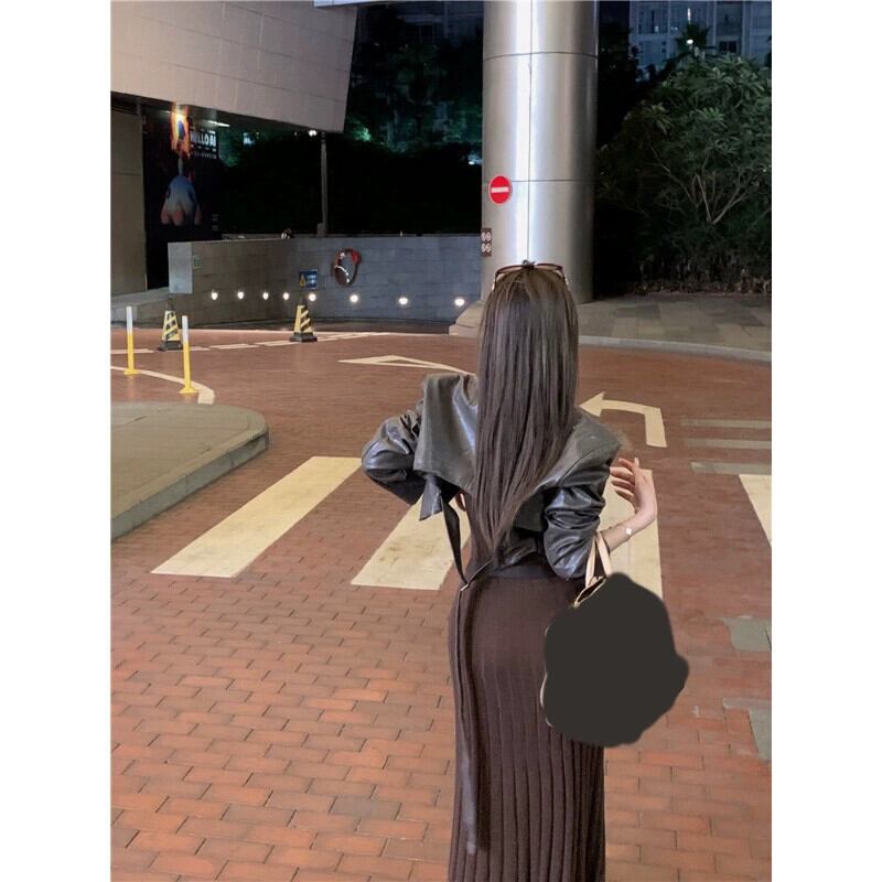 色:コーヒー色のドレス,コーヒーカラーのレザージャケット