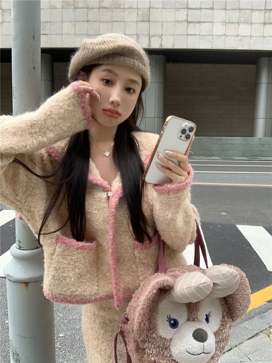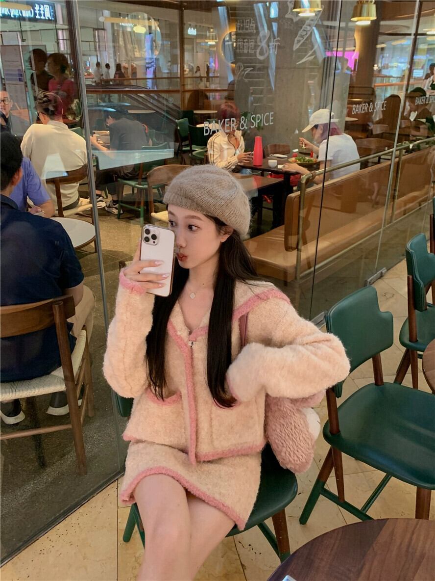 純粋な欲望スタイルソフトピンクアプリコットネイビーカラーニットカーディガン優しいスカート甘辛ツーピーススーツ女性の新しい秋冬スタイル 大人ガーリー スウィート キュート カジュアル オータム 秋物 ウィンター 冬物 nana16492490033 | modepoisson
