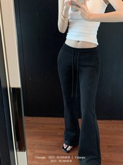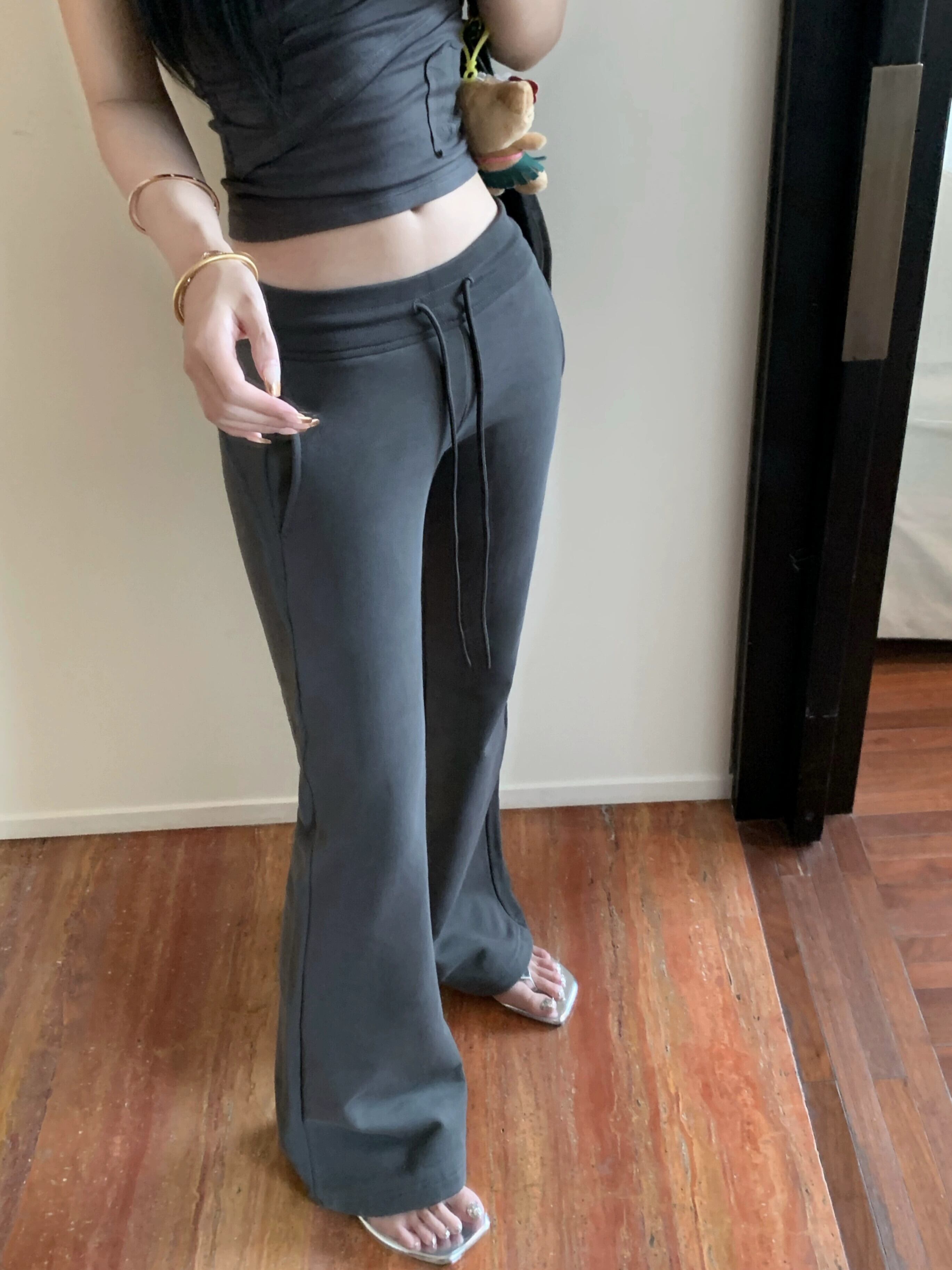 フレアスウェットパンツ女性のローウエストわずかにフレアカジュアルパンツドローストリングパンツ女性の2023秋の新作ストレートパンツ レッド オータム 秋物 nana64680618277 | modepoisson