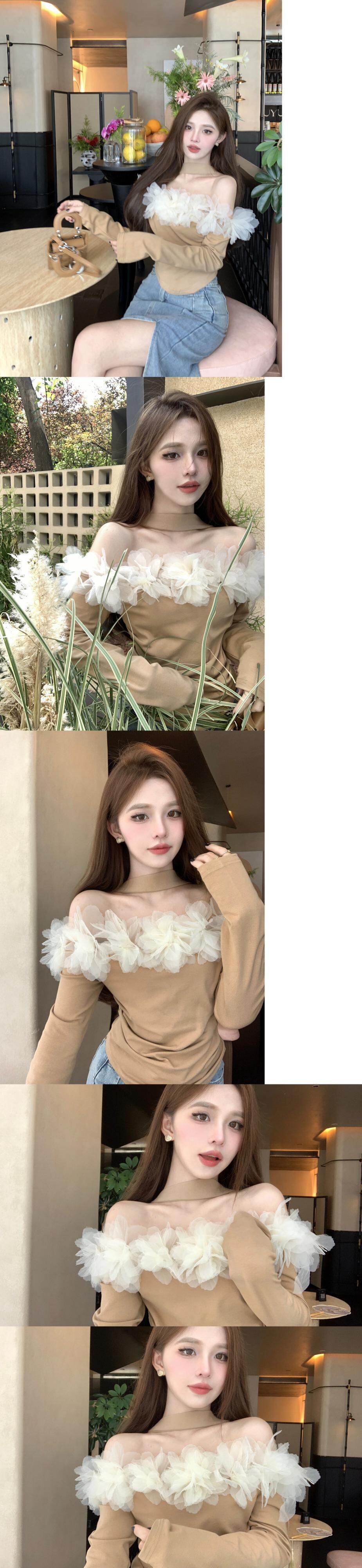 ワンラインカラーオフショルダー長袖 Tシャツスリムトップ秋スプライシングスリムヨーロッパシャツ 2023 新しいスタイルの女性 ロング オータム 秋物 ヨーロピアン nana47726093237 | modepoisson