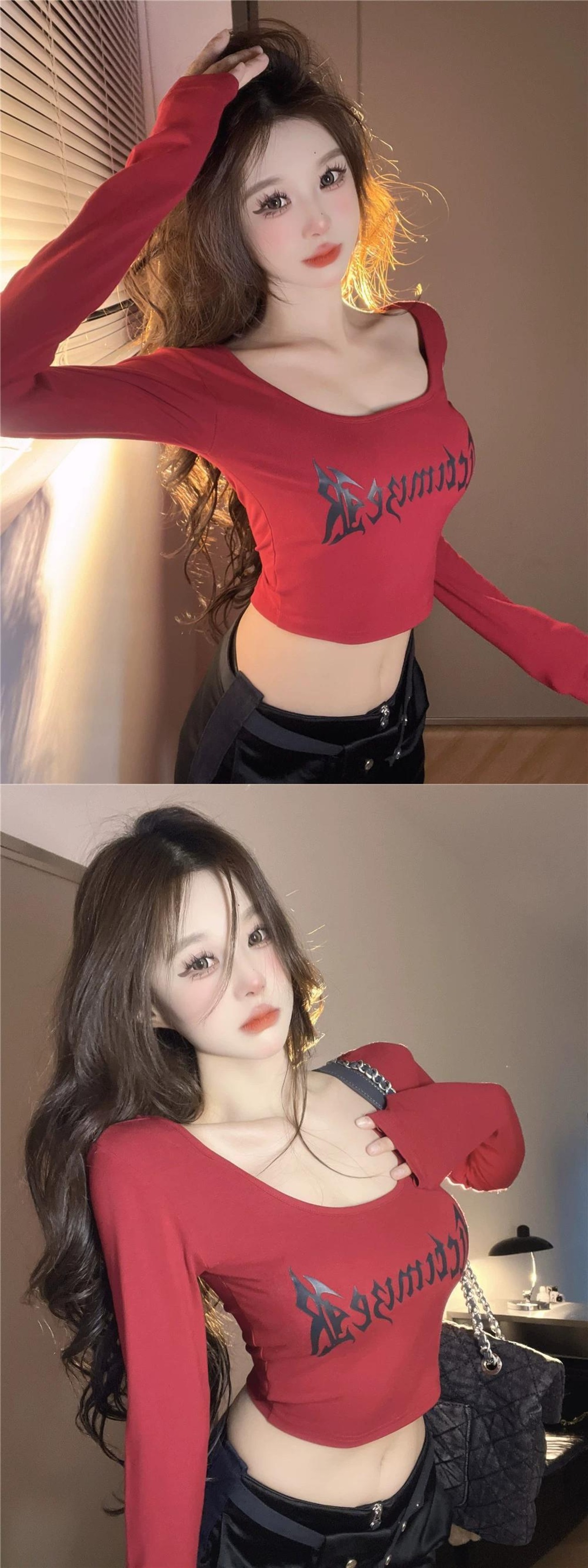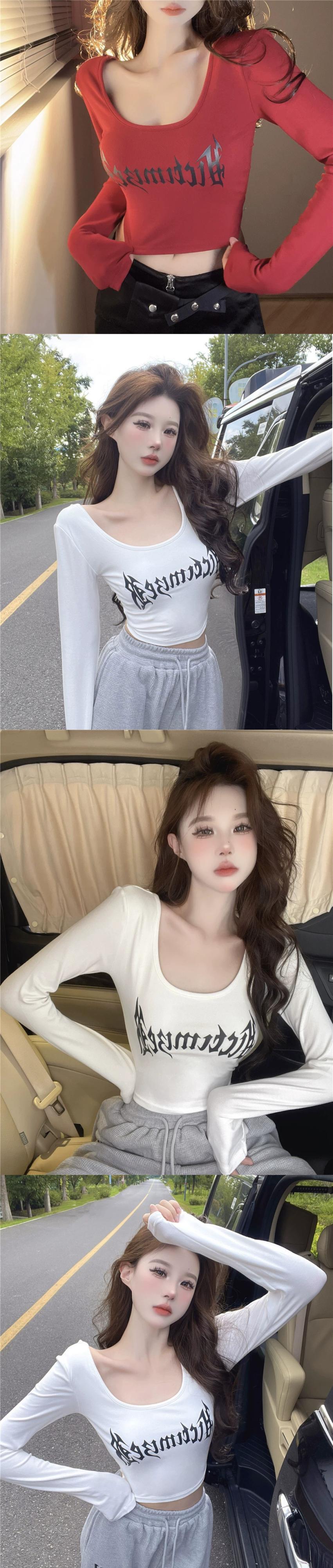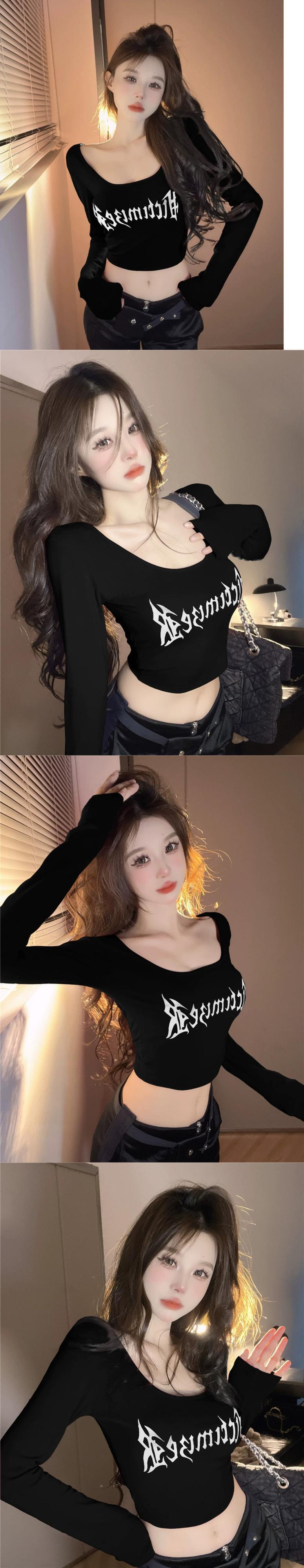 アメリカンスタイルの右肩長袖Tシャツの女性の秋の甘いデザインニッチシックなスリムボトムシャツショートトップ ロング 大人ガーリー スウィート キュート カジュアル オータム 秋物 nana92731463318 | modepoisson