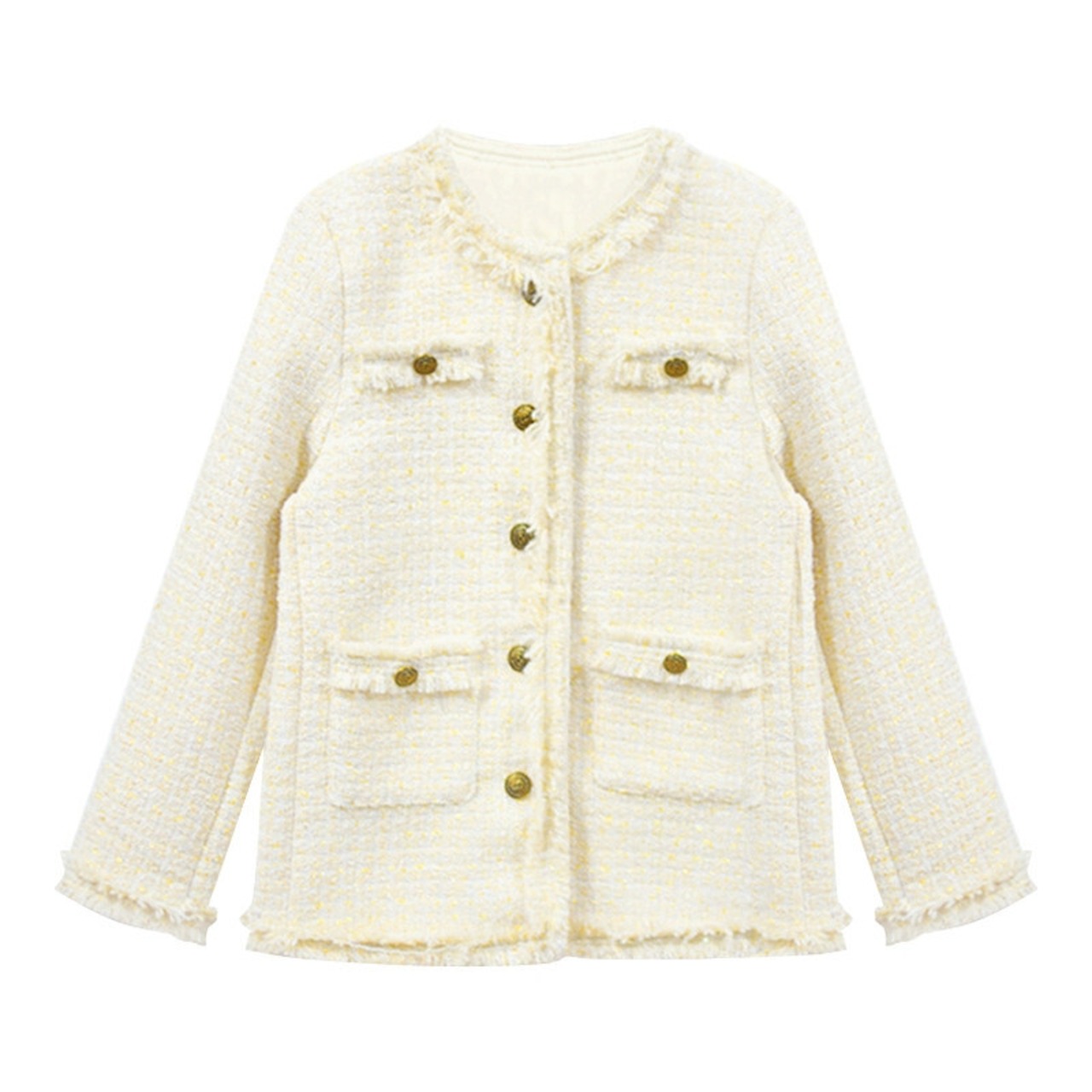 秋のフレンチレトロ小さな香りラウンドネックジャケットハイエンド気質ツイード長袖トップ女性 2023 新しいスタイル ロング オータム 秋物 Oネック nana21502938278 | modepoisson