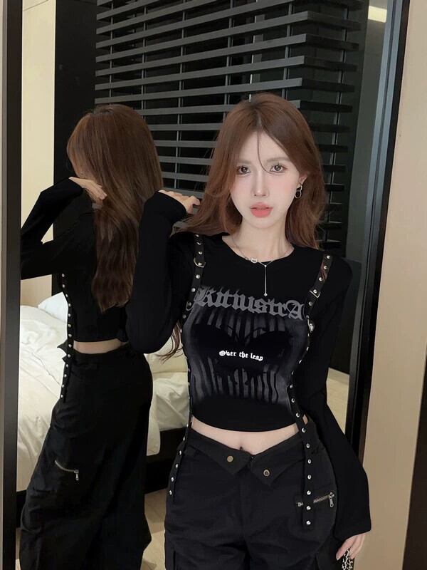 ED 長袖プリント tシャツ レディース 秋 ラウンドネック レター ニッチ スリム フィット トップ スリミング ショート ボトム シャツ ロング オータム 秋物 Oネック nana57136996388 | modepoisson