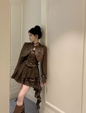 色:コーヒージャケット,コーヒーサスペンダースカート