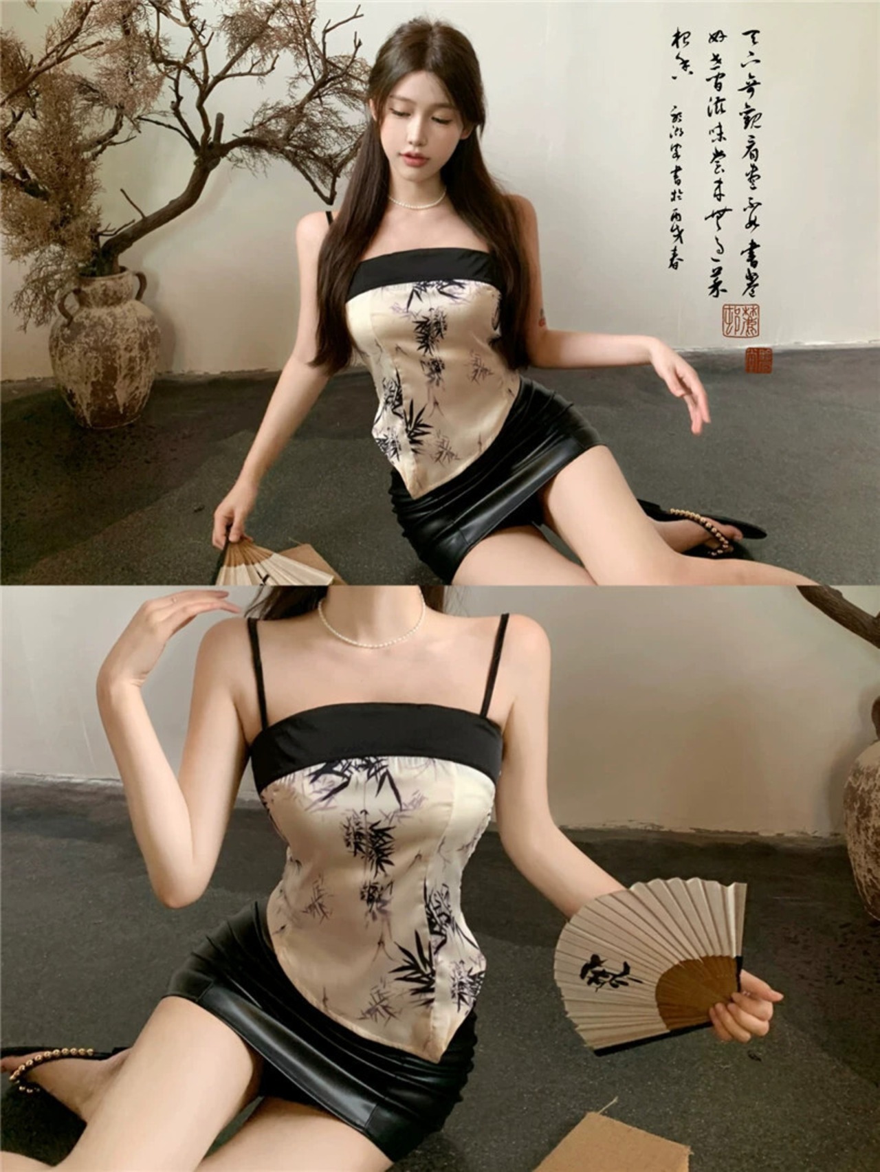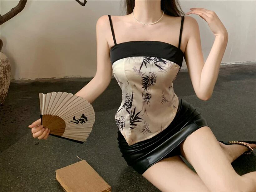 夏の中国風のプリントレトロベスト、甘くてスパイシーなスタイルの万能アウターウェアボトミングノースリーブサスペンダーチューブトップ 大人ガーリー スウィート キュート カジュアル サマー 夏物 nana66331444188 | modepoisson
