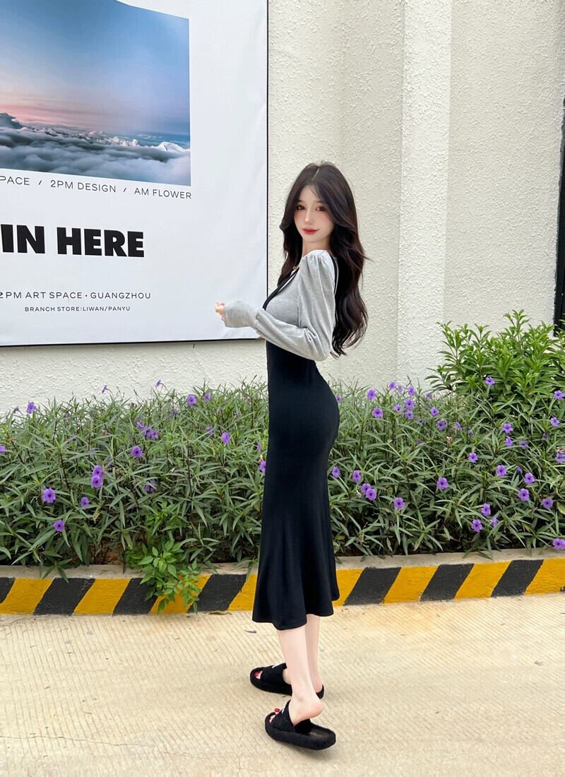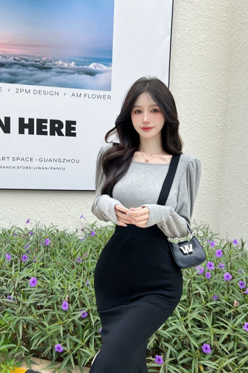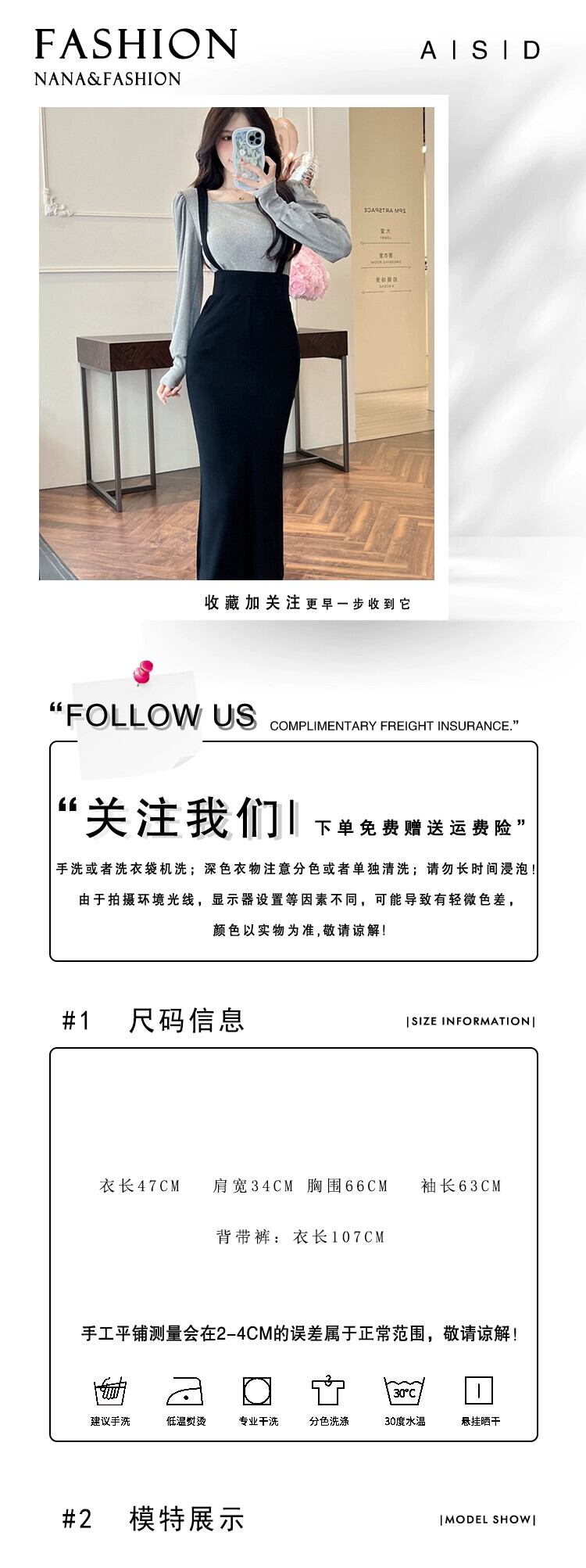 レトロパフスリーブ純粋な欲望スタイルボトミングトップ女性初秋 2023 新しいハイウエスト多用途サスペンダーフィッシュテールスカートスーツ ハイウェスト オータム 秋物 ピュア nana62594843966 | modepoisson