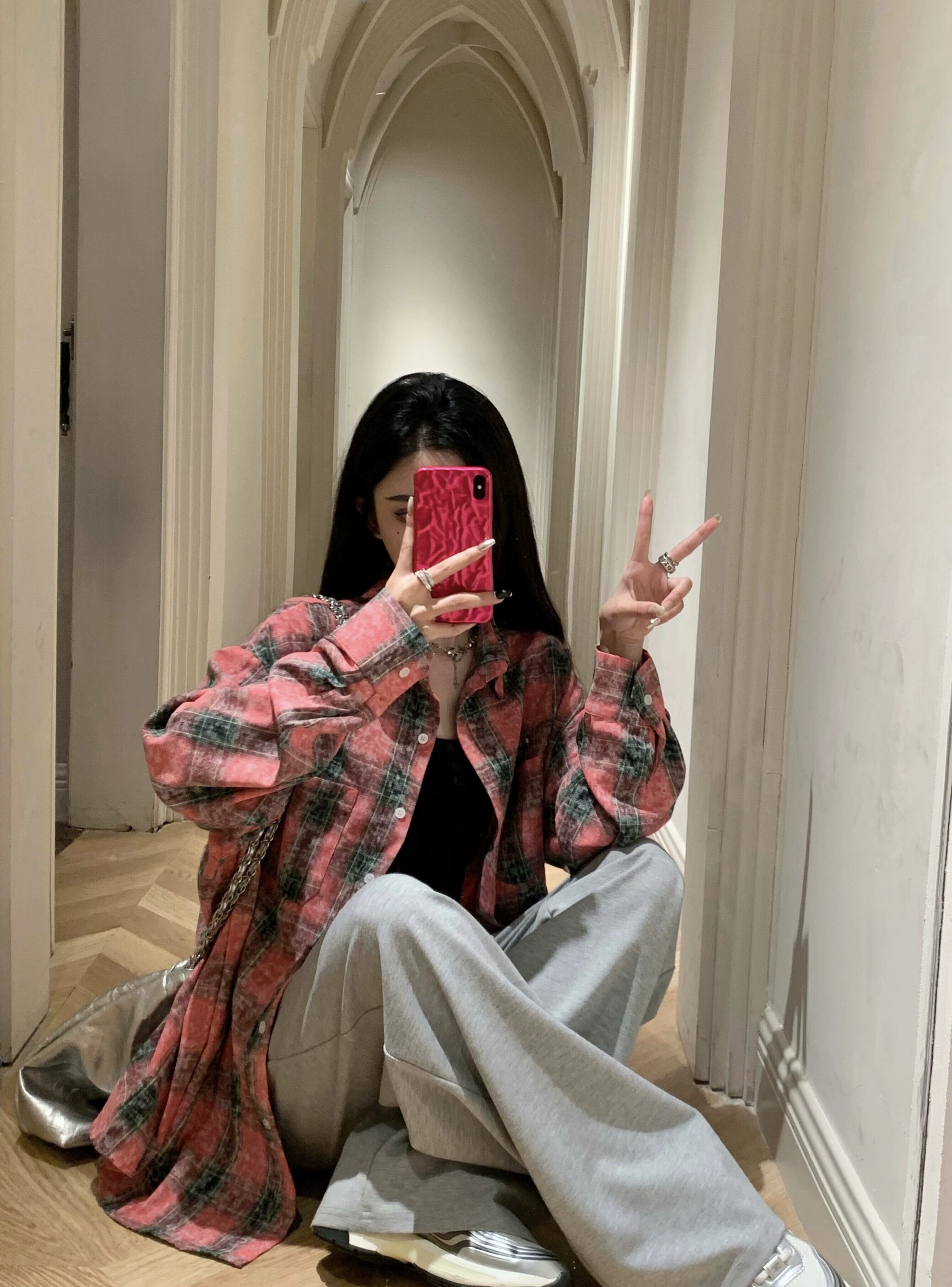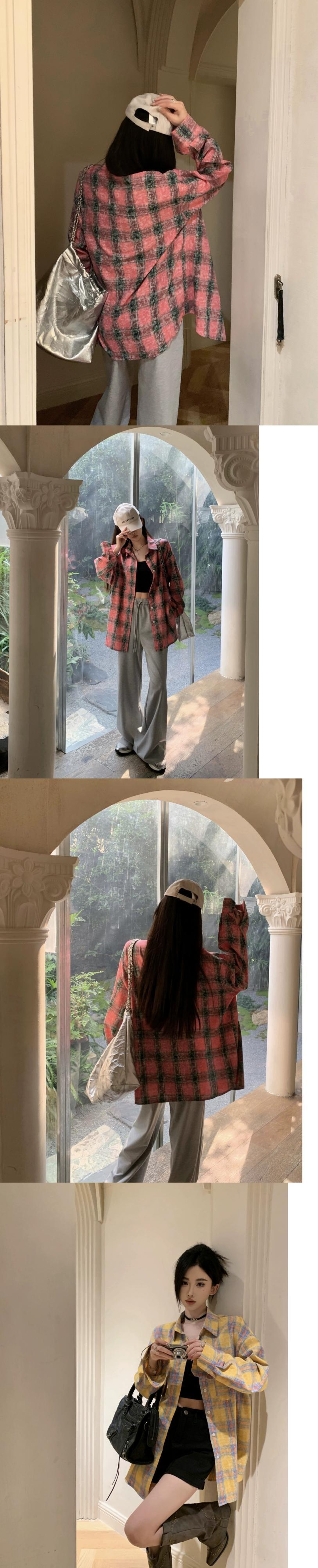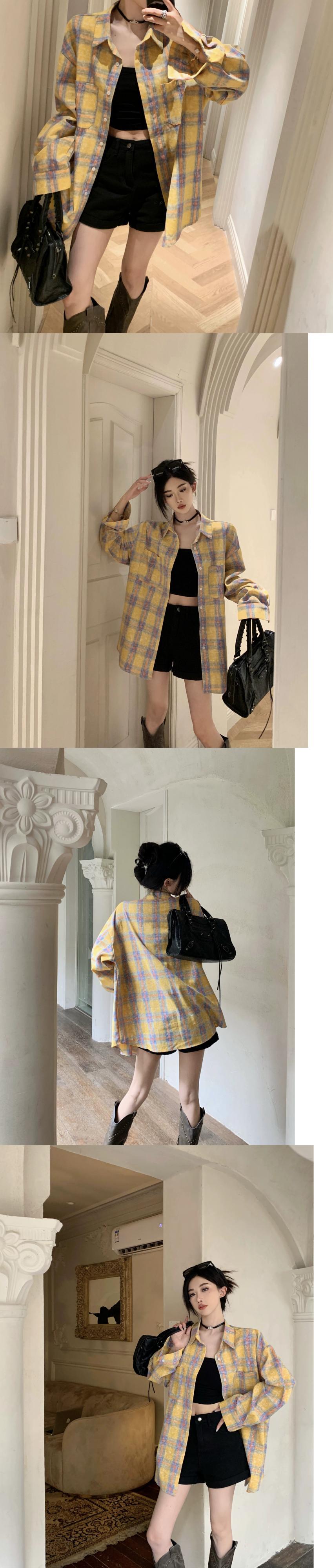 怠惰なスタイルのルーズチェック柄シャツ女性の春と秋の新しいフレンチデザイン長袖ニッチユニークなトップ ロング スプリング 春物 オータム 秋物 nana87009954889 | modepoisson