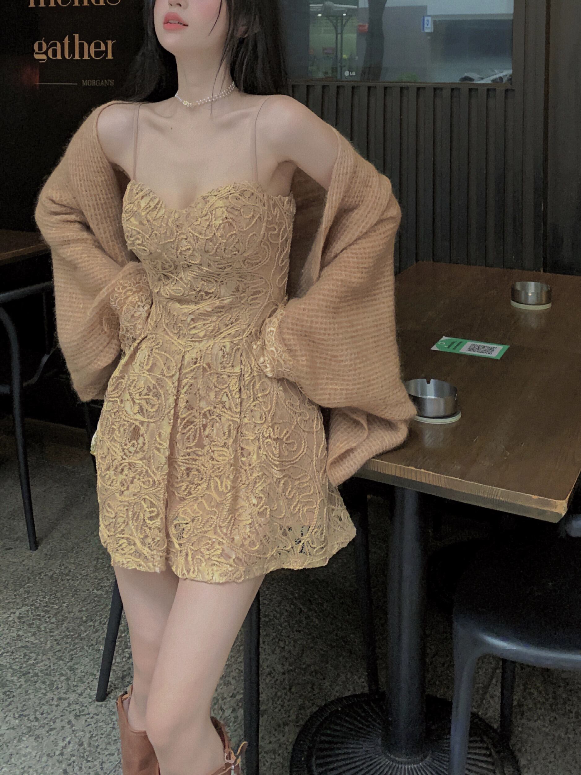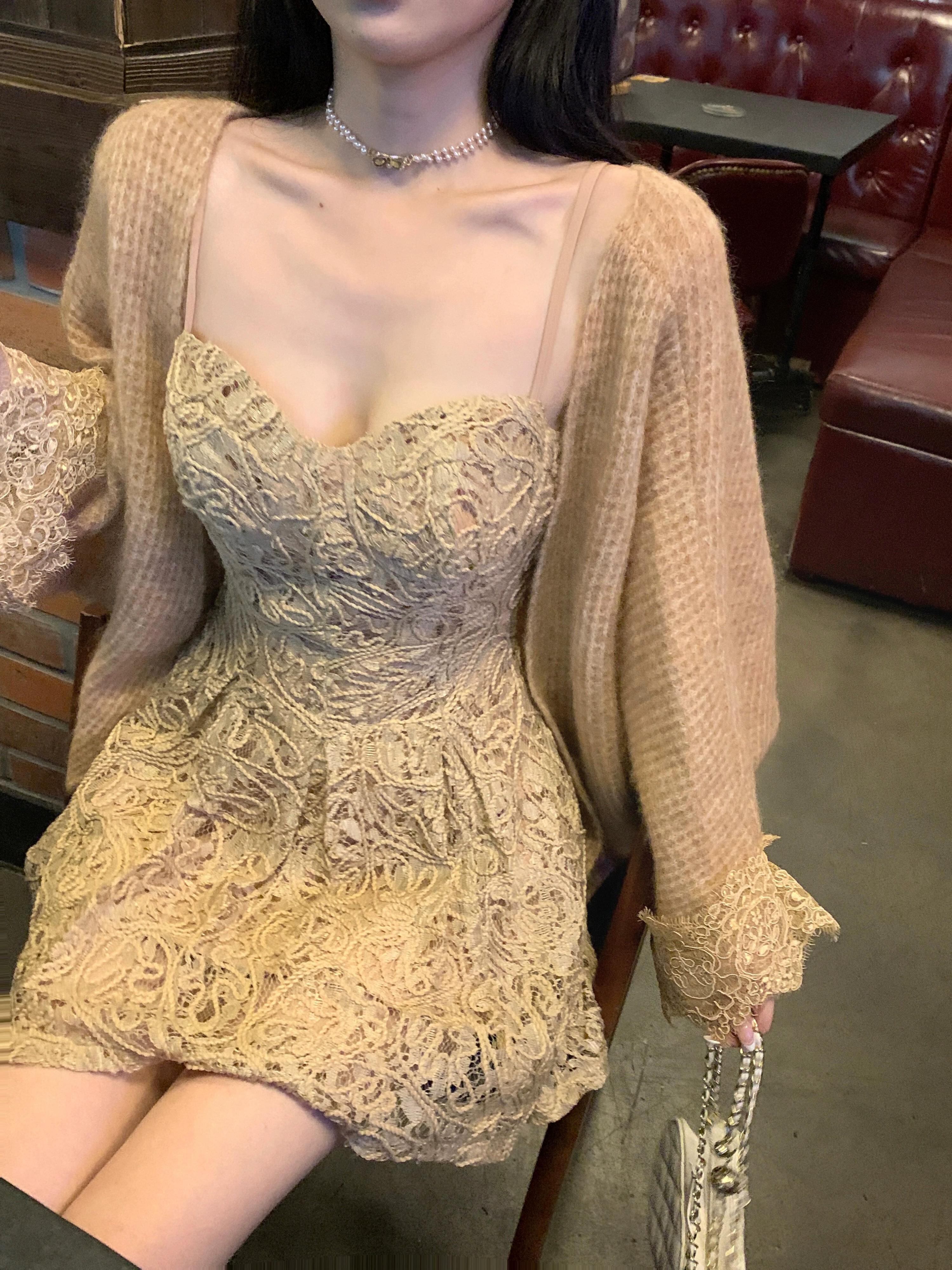 フレンチサスペンダードレス秋服女性 2023 新しいスーツファッショナブルなセーターカーディガン長袖ツーピースセット女性 ロング オータム 秋物 nana57255386299 | modepoisson