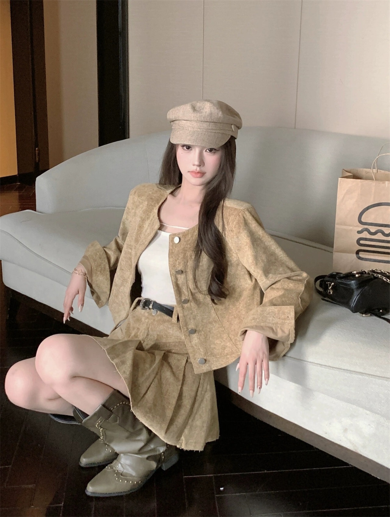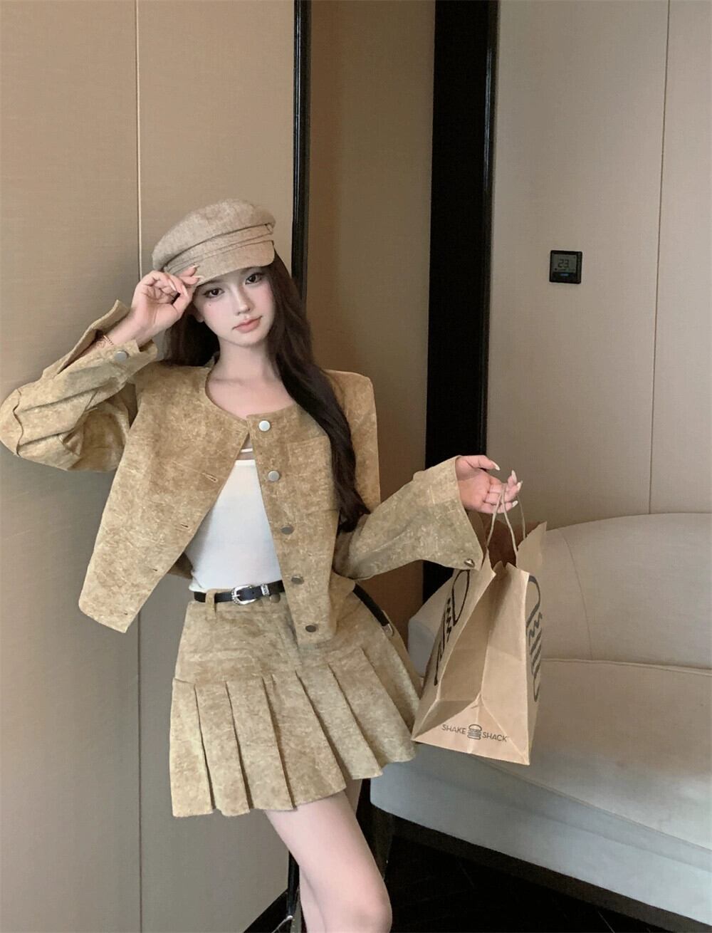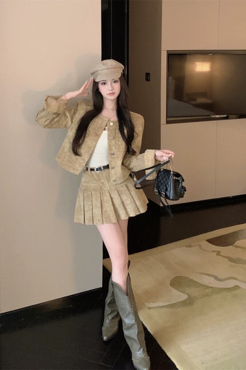 フランスのハイエンドの社交界の気質のファッションスーツの女性の秋のインターネットセレブの新しいスリムフィットコートハイウエストプリーツスカート ハイウェスト オータム 秋物 nana19314824508 | modepoisson