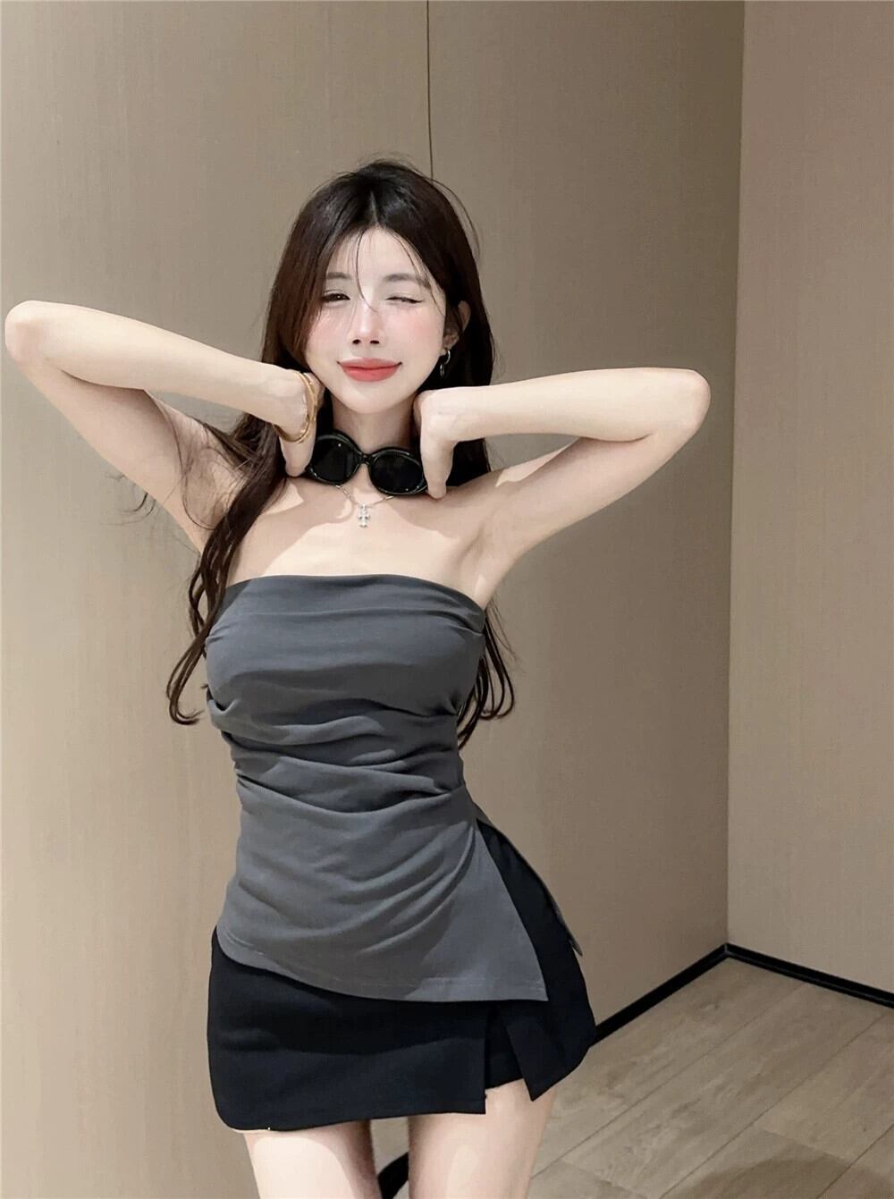 フランスの純粋な欲望スタイルのワンショルダー チューブ トップ女性夏プリーツ スリム スリム オフショルダー ノースリーブ トップ サマー 夏物 ピュア nana963533118 | modepoisson