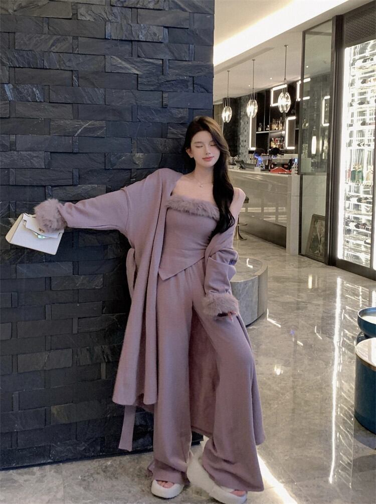 色:紫のコート,紫のチューブトップ,パープルパンツ,アプリコットコート,アプリコットチューブトップ,アプリコットパンツ