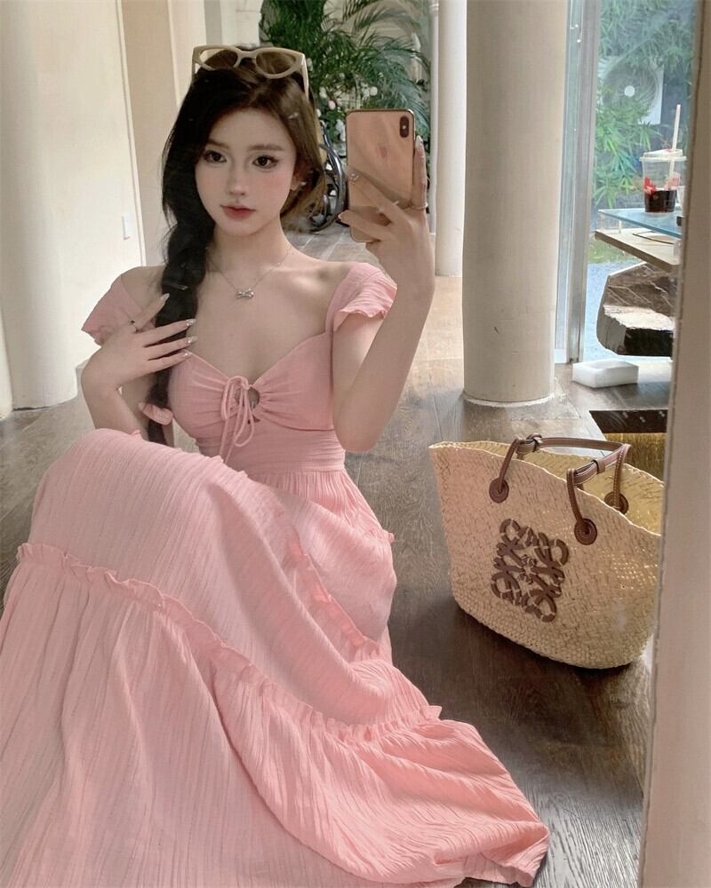 フレンチスタイルのハイエンドドレスの女性の新しいピンクのスカートニッチウエスト痩身甘いロングスカート夏 大人ガーリー スウィート キュート カジュアル サマー 夏物 nana60091529587 | modepoisson