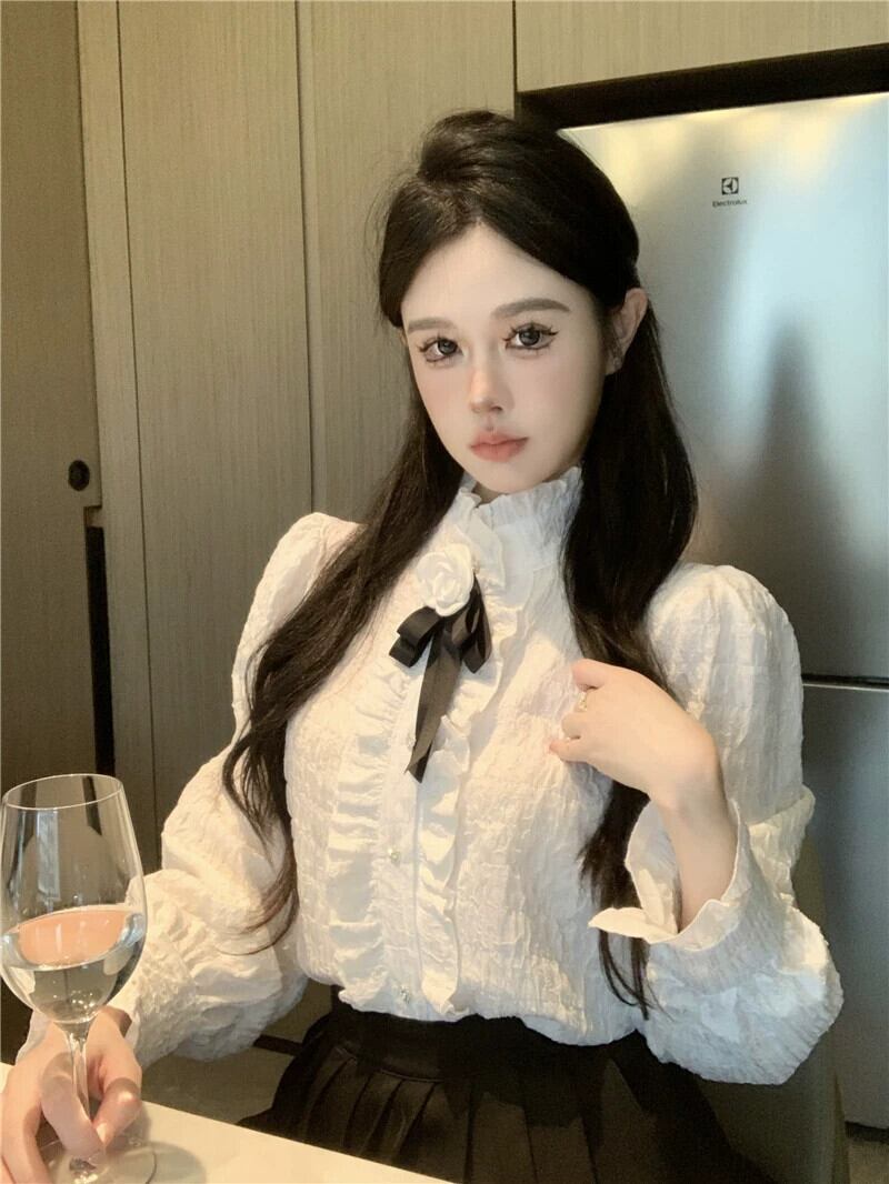 フランス宮殿スタイル長袖シャツ女性 2023 新しい秋スタイルのユニークなデザインニッチスリムフィットトップ ロング レース オータム 秋物 nana42068506563 | modepoisson