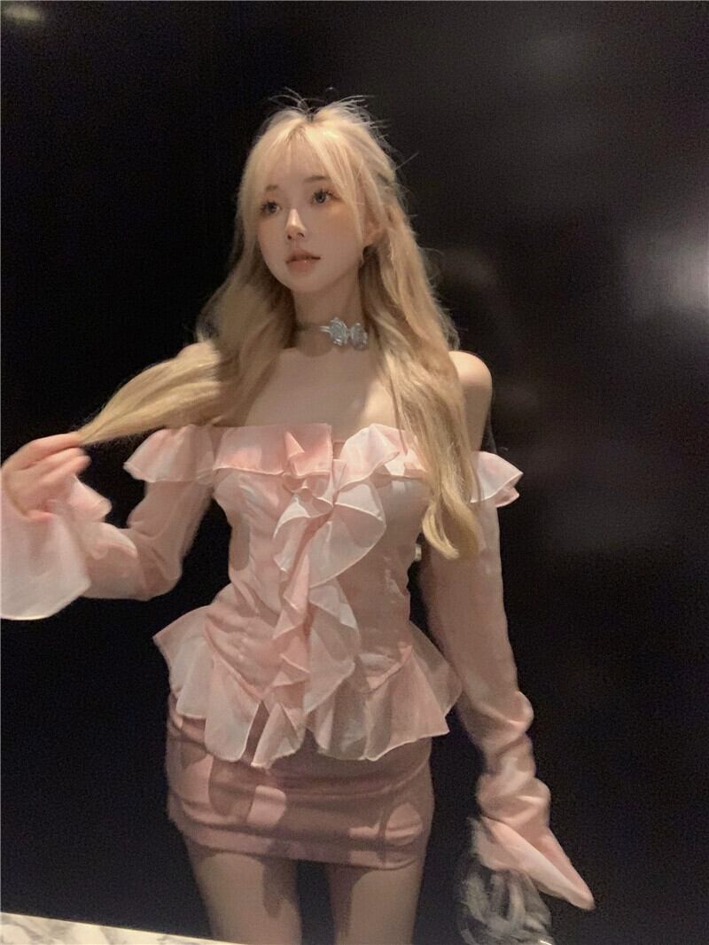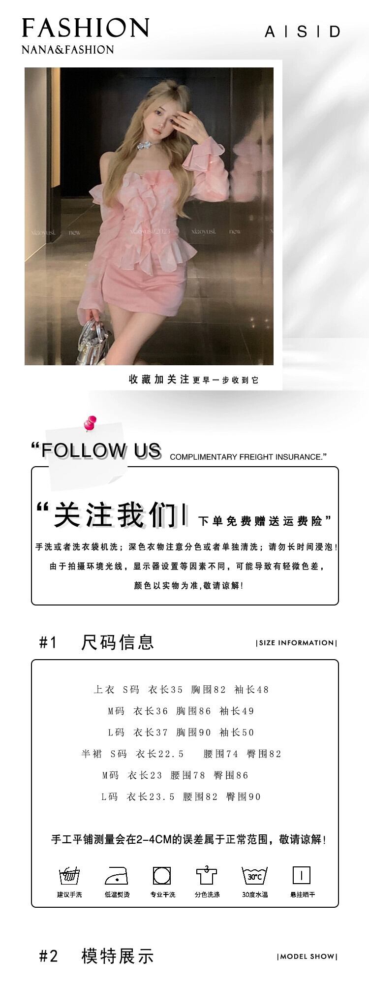 初秋の甘いトップフリルシャツ痩身ハーフスカート 2023 インターネットセレブスタイルスーツ 2 点セット女性 大人ガーリー スウィート キュート カジュアル オータム 秋物 nana87621887265 | modepoisson