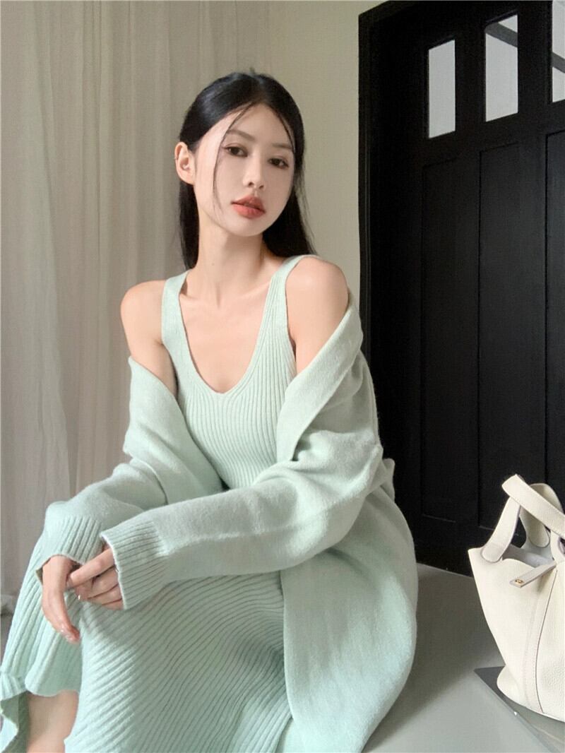 フレンチスタイルカーディガンセータージャケットスリムフィットサスペンダードレスストリートスーツスカートツーピースセット女性の新しい秋スタイル オータム 秋物 nana98523040305 | modepoisson