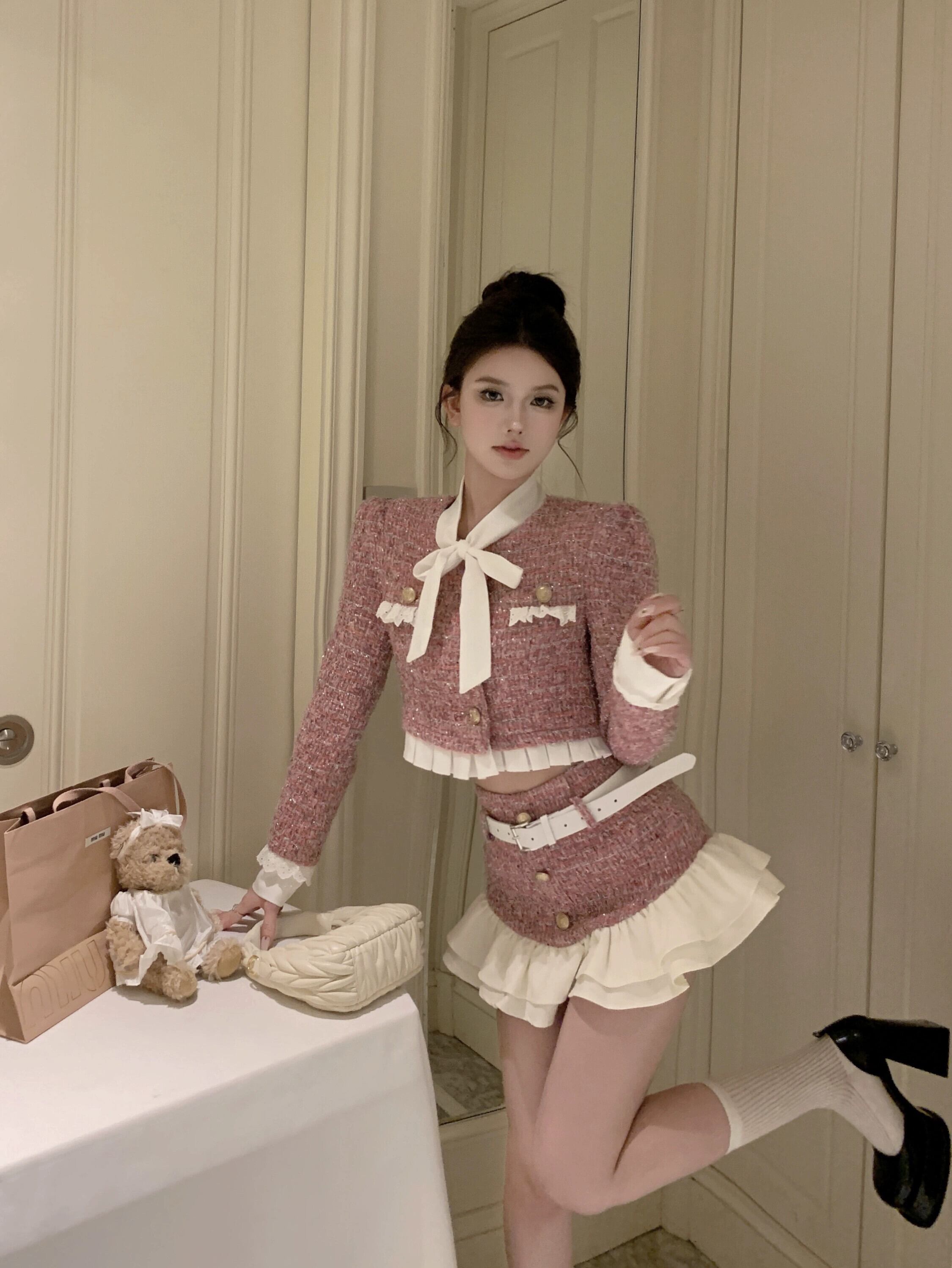 色:ピンクトップ,ピンクスカート+ベルト