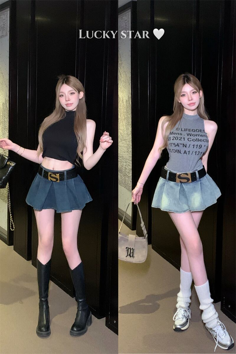 色:ベルト,ライトブルーデニムスカート,ダークブルーのデニムスカート