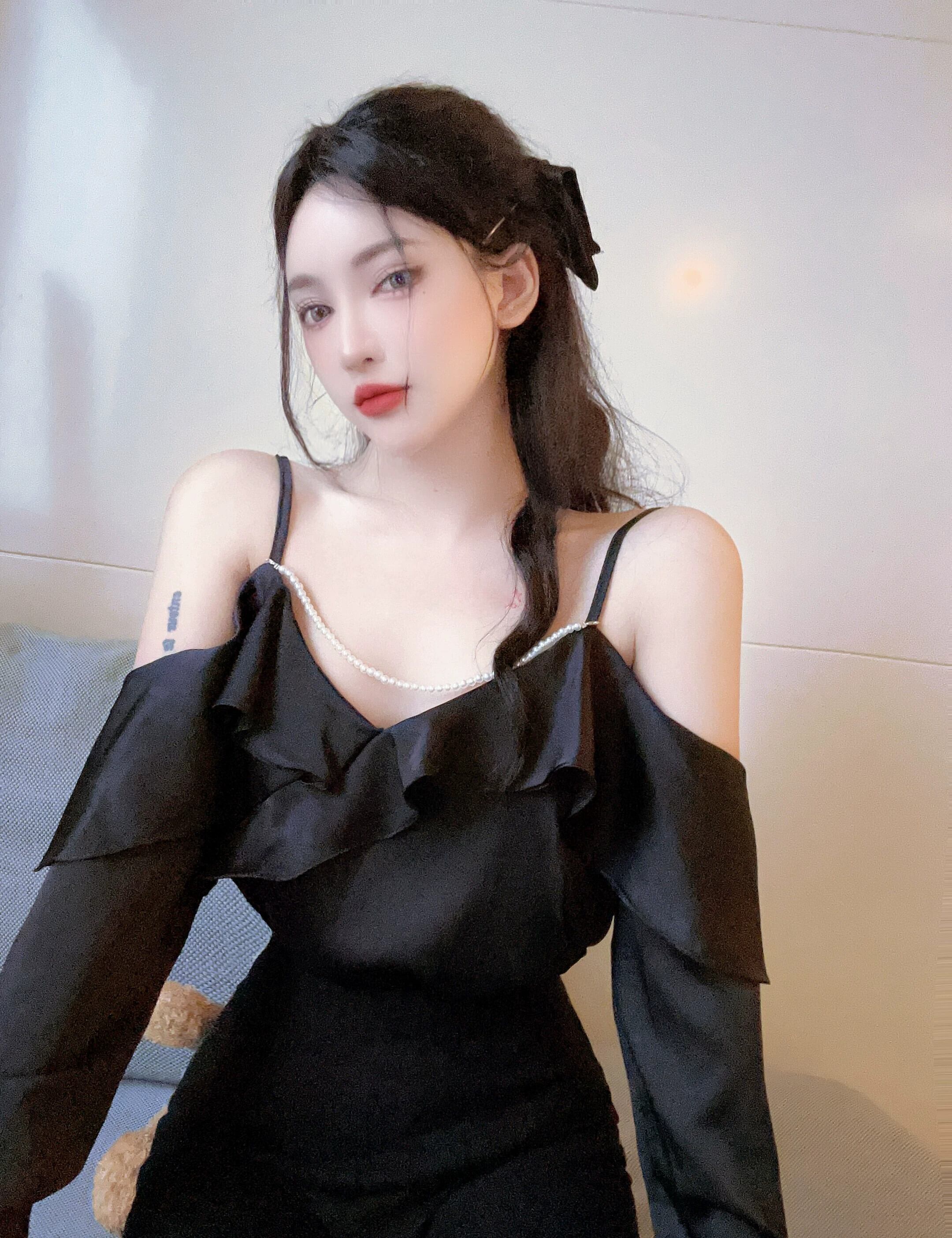フランスのオフショルダー V ネック ホルター トップ、新しいデザイン初秋、西洋風長袖シフォン シャツ、美しい小さなシャツの女性 ロング オータム 秋物 Vネック nana93427398887 | modepoisson