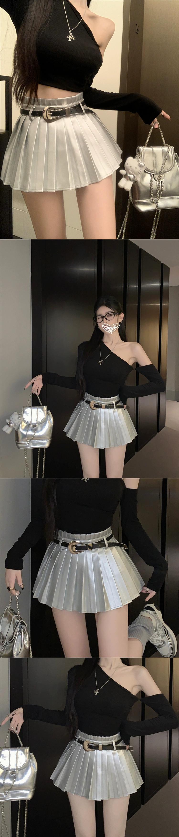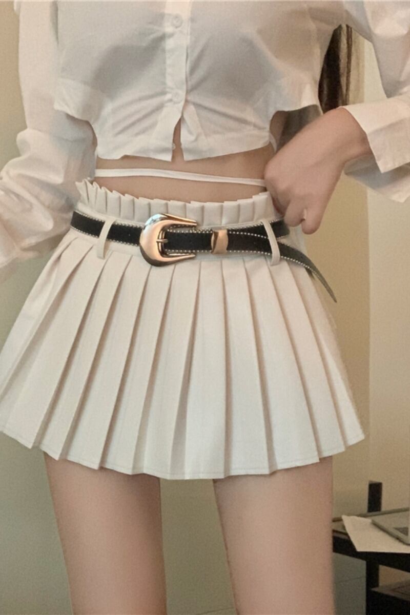 今年人気のレザースカート プリーツスカート レディース 秋 ホワイト ショートスカート ハイウエスト 着痩せ Aラインスカート ハイウェスト オータム 秋物 nana50640233092 | modepoisson