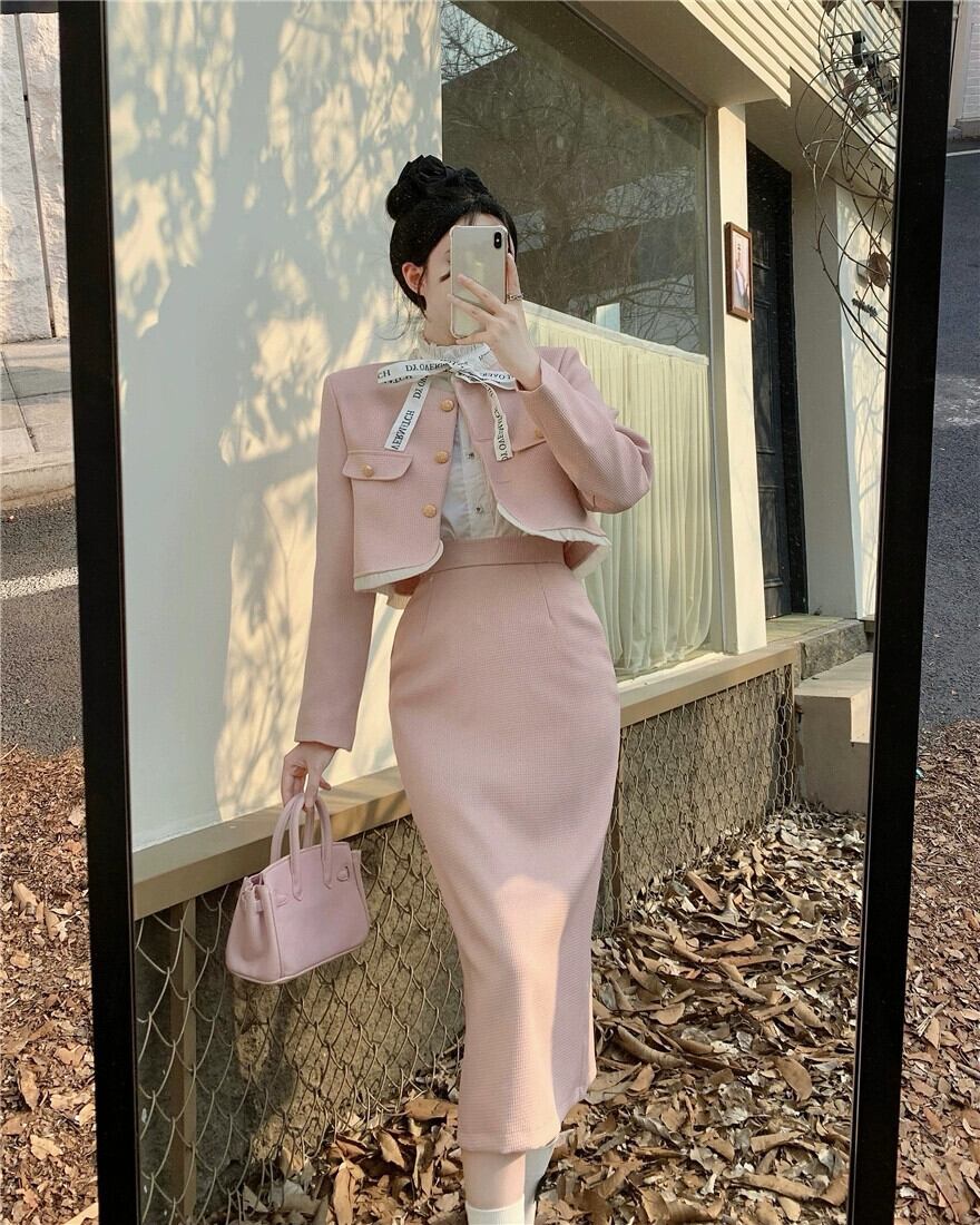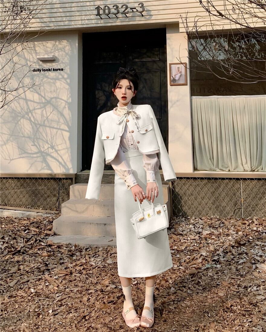 甘い気質のジャケット、ハーフレングススカート、2023年初秋の新しいプロフェッショナルスーツ、小さな香りのスタイル、高級2点セットの女性 大人ガーリー スウィート キュート カジュアル オータム 秋物 nana58164741319 | modepoisson