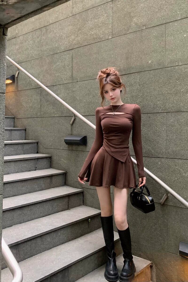 アメリカンホットガールスリムフィットニットトップウエストハーフパンツスカート今年の人気のツーピーススーツ女性の初秋 オータム 秋物 ショーツ ブルマー nana39704972252 | modepoisson