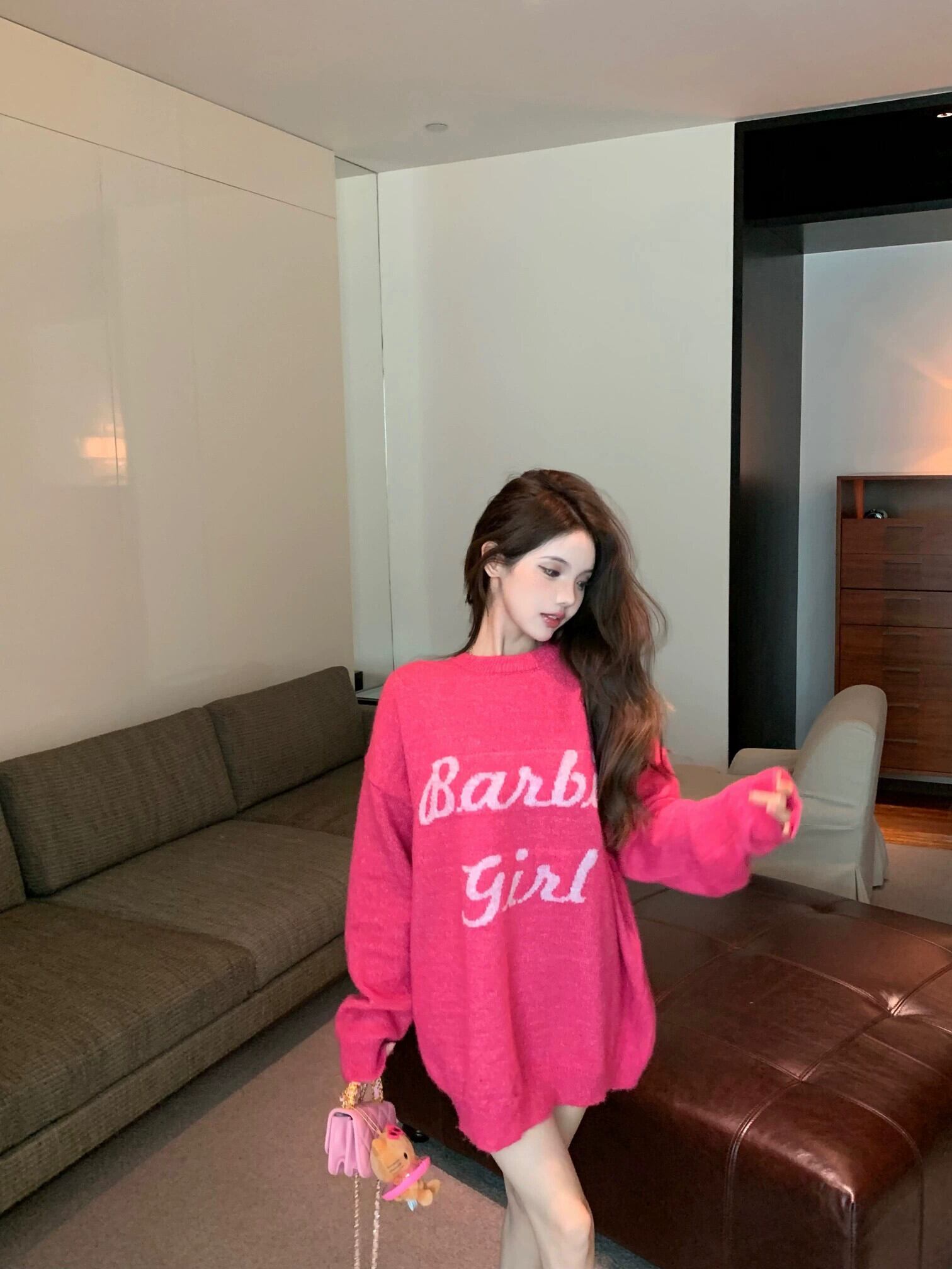 アメリカ怠惰なスタイルのセーターの女性 2023 新しい初秋ラウンドネックプルオーバールーズオーバーサイズ長袖トップ ロング オータム 秋物 Oネック nana14259390948 | modepoisson