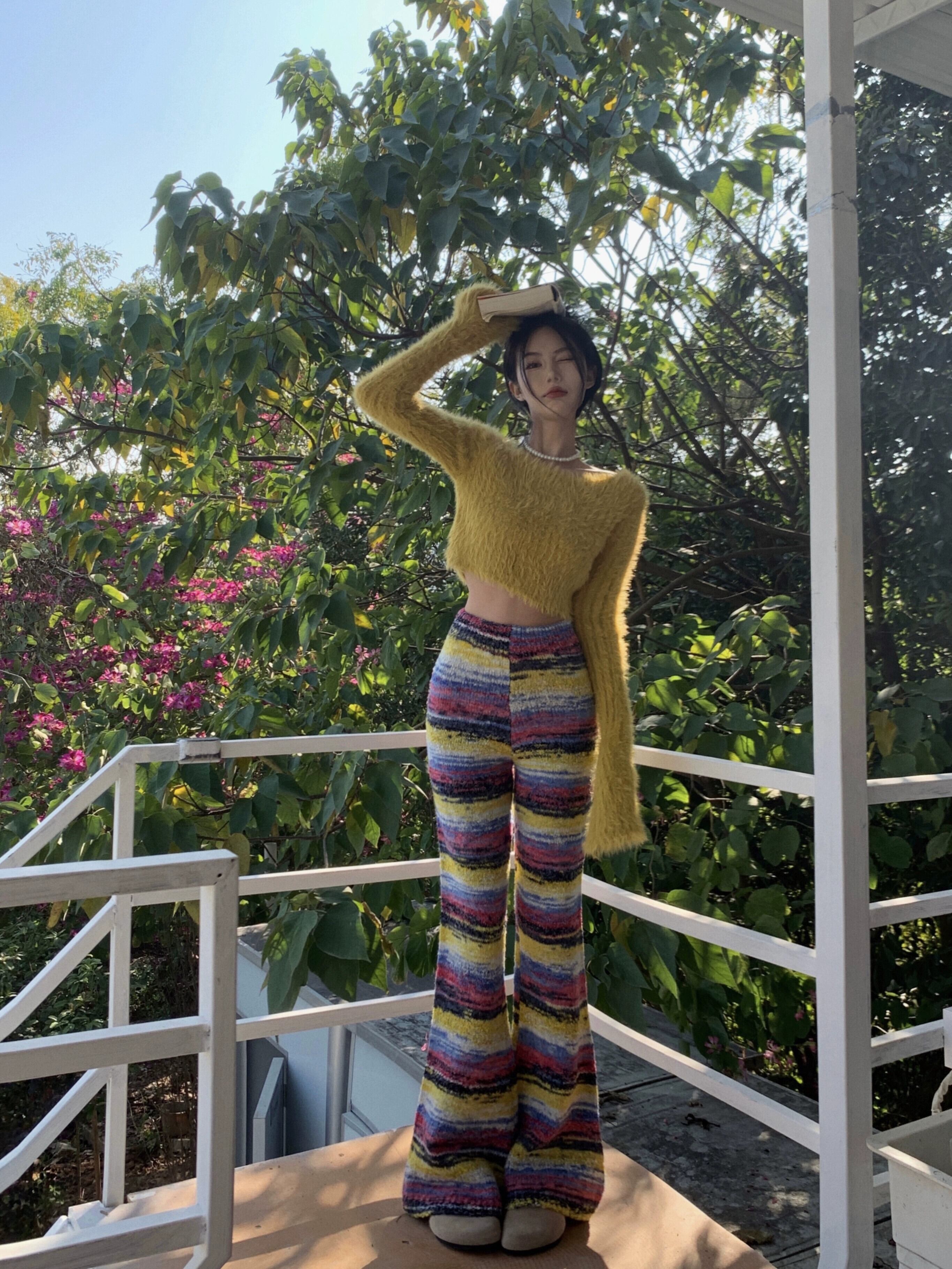 長袖セーター女性の初秋ハイウエスト痩身ワイドレッグパンツニットベルボトムパンツ 2023 新しいファッションツーピーススーツ ロング オータム 秋物 nana56715698778 | modepoisson