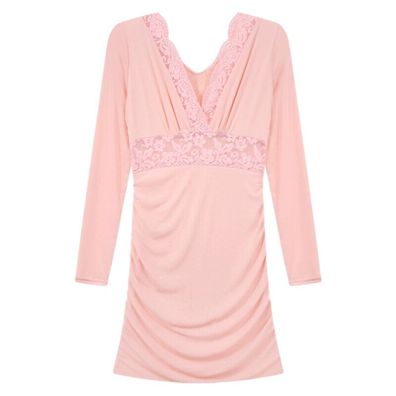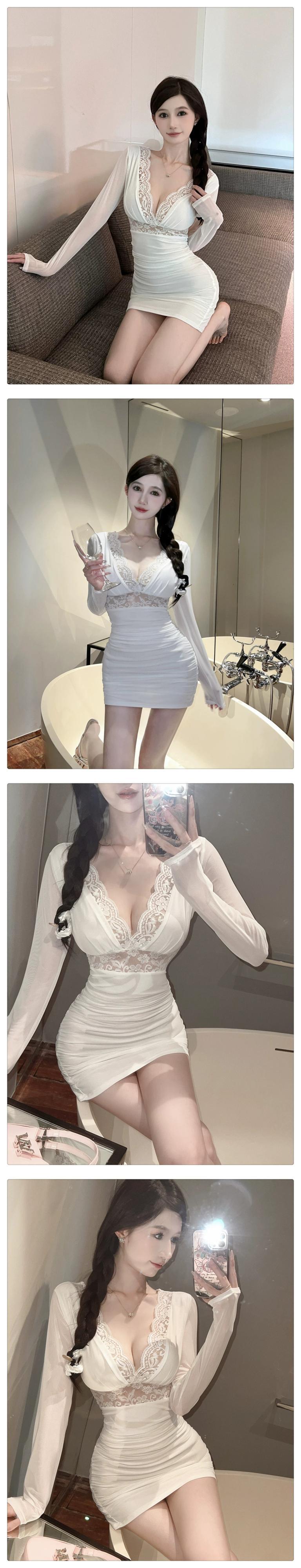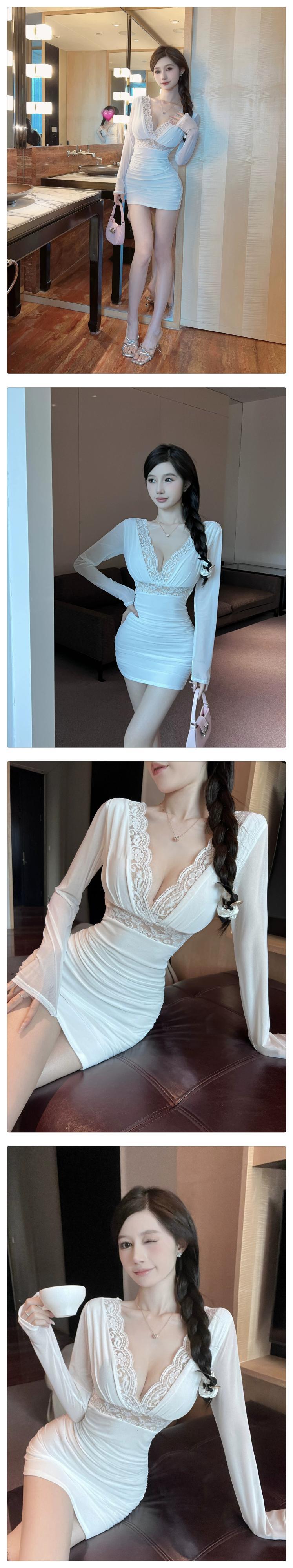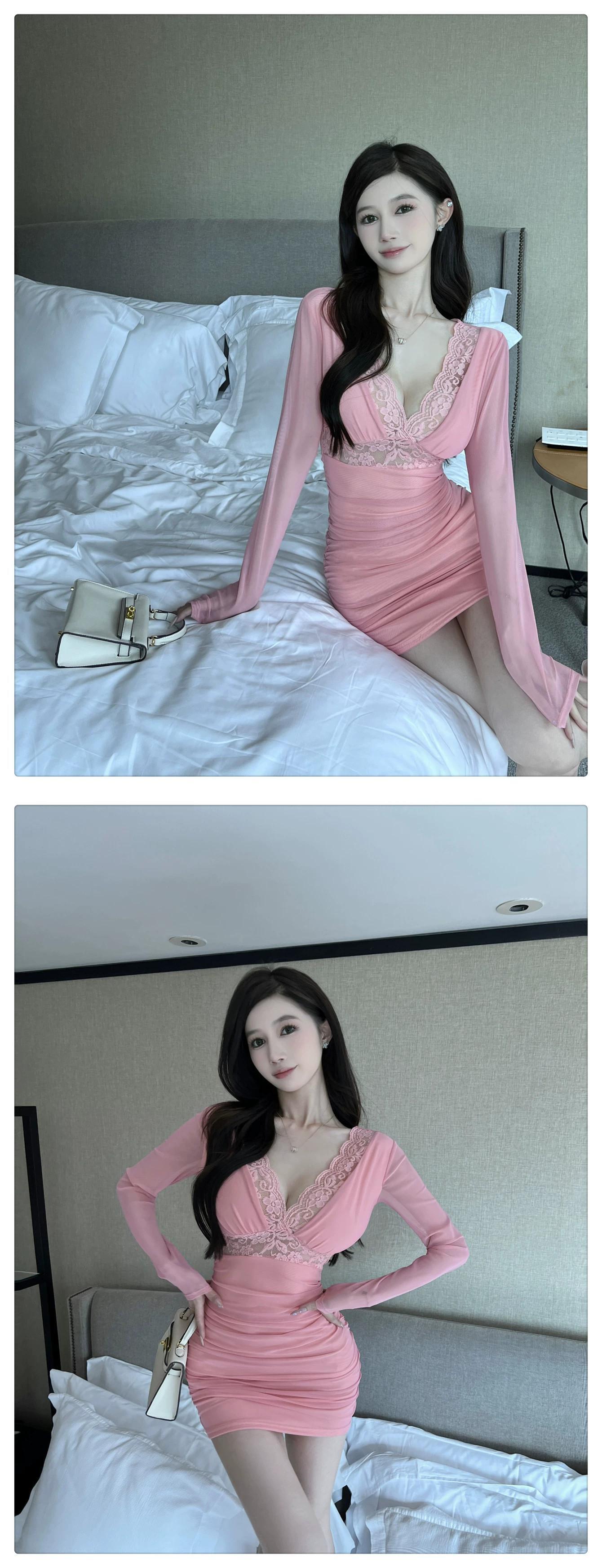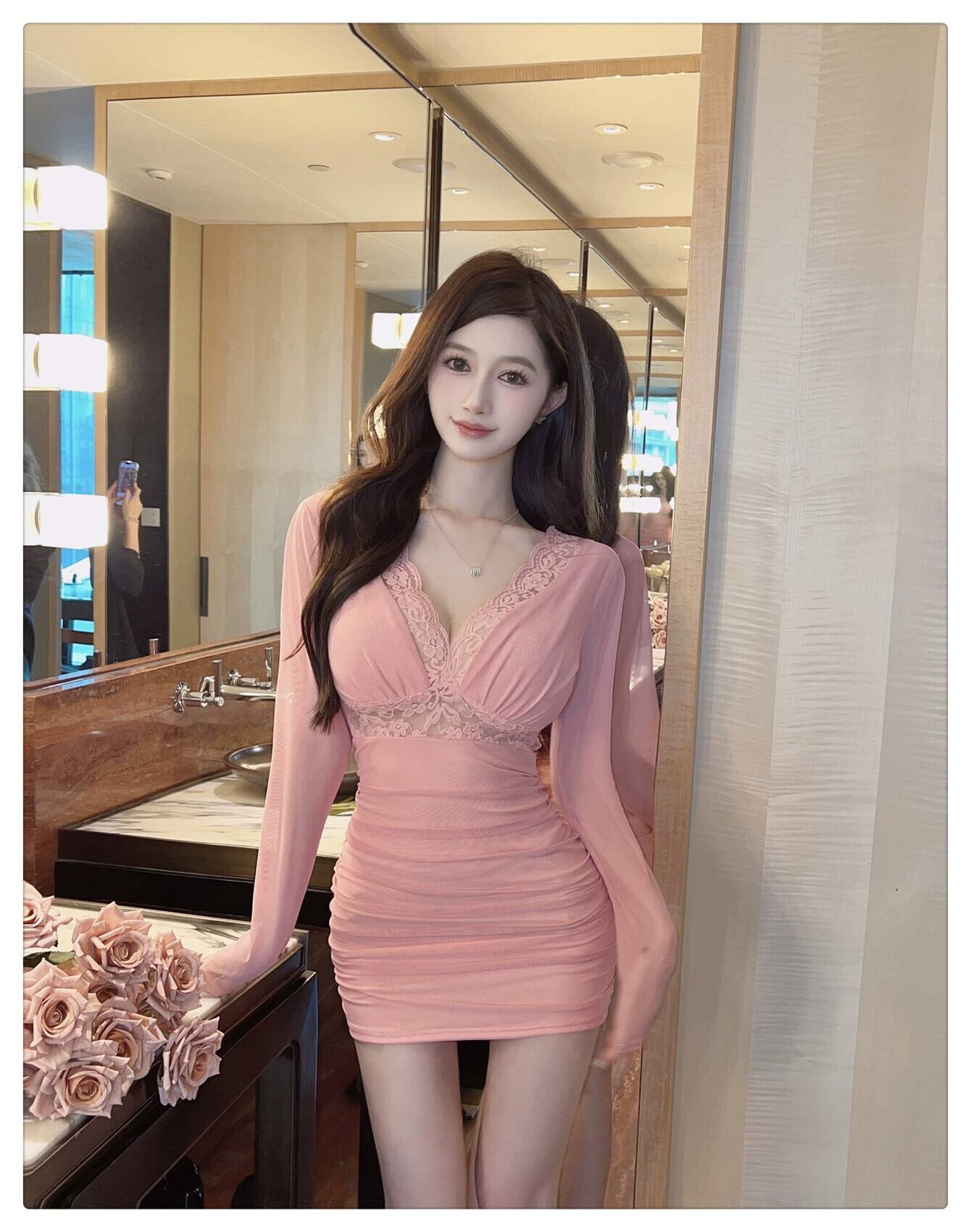 セレブのセクシーなヒップハグドレス女性の初秋の新しいレースかぎ針編みメッシュ長袖底純粋な欲望のショートスカート ロング オータム 秋物 ピュア nana11008277545 | modepoisson