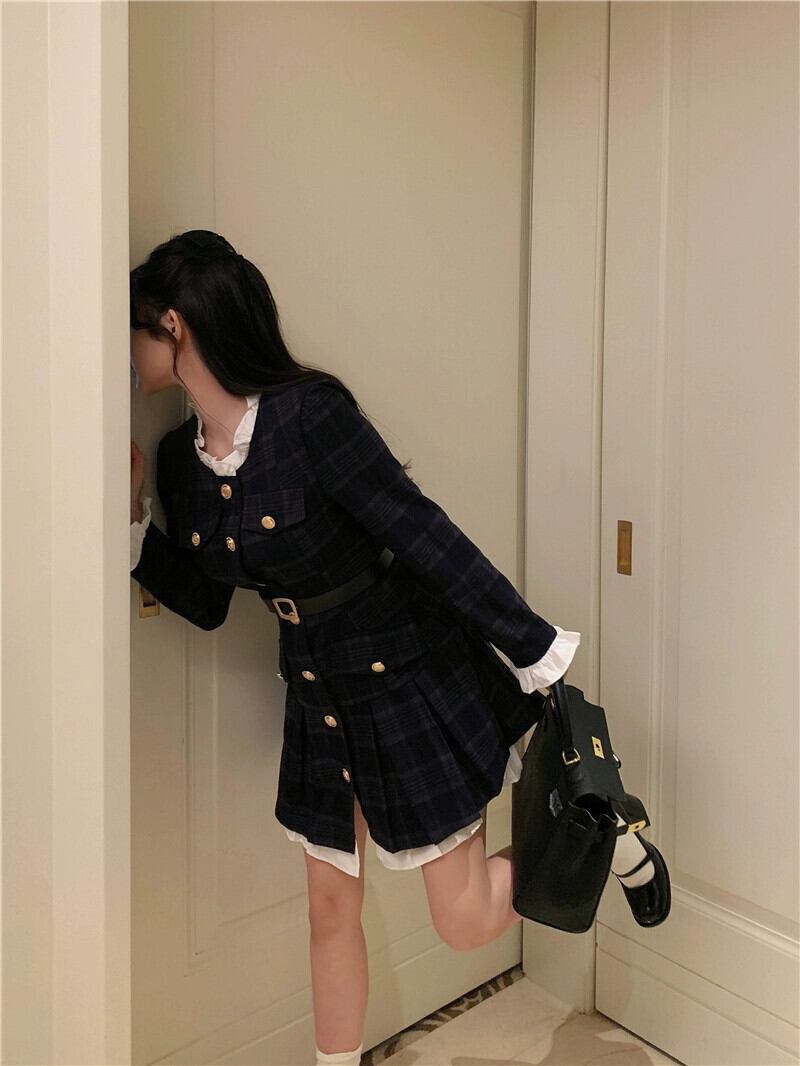 秋と冬のフランスの長袖ドレスの女性、高級で香りが良くエレガントなスカート、ウエストを細くする、つなぎ合わせたジャケットと短いスカート ショート ロング オータム 秋物 ウィンター 冬物 nana77487768159 | modepoisson
