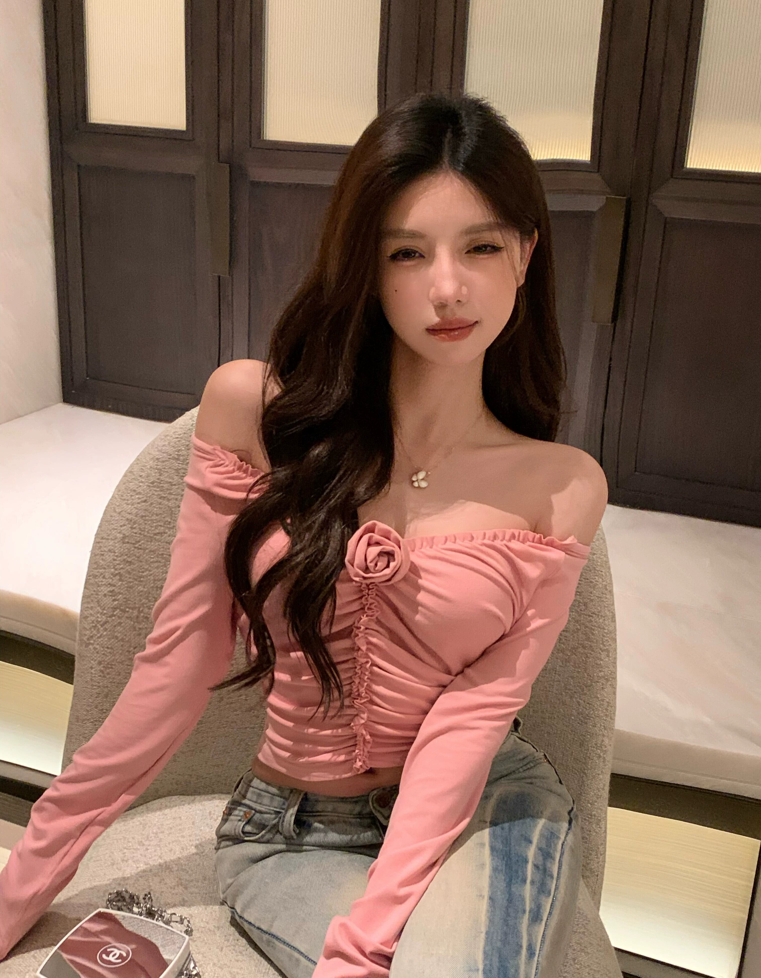 長袖Tシャツ、ユニークでユニークなデザイン、ニッチなインナーウェア、スリムフィットのニットボトムシャツ、ショートトップ、女性の春と秋 ロング スプリング 春物 オータム 秋物 nana44663598662 | modepoisson