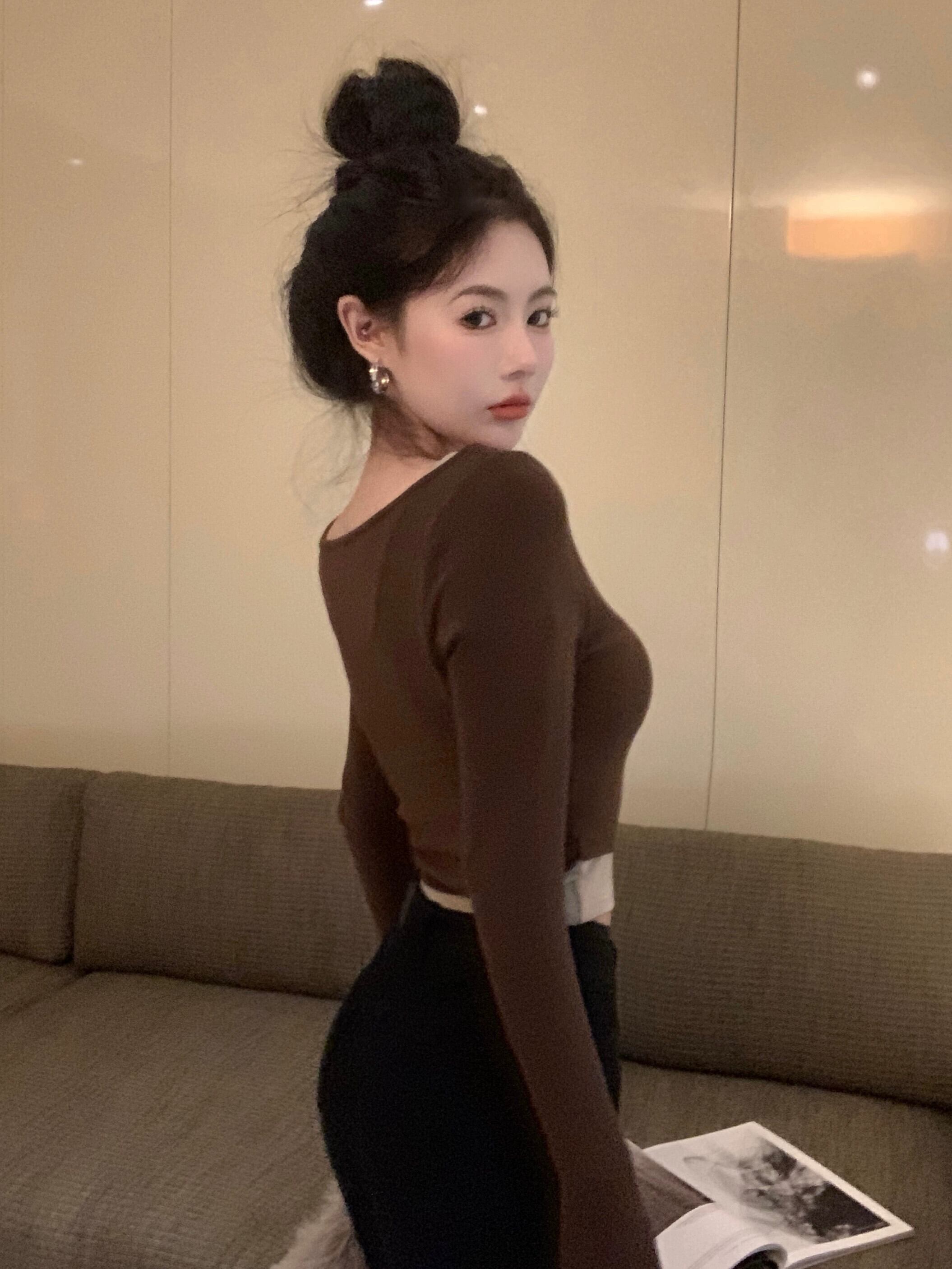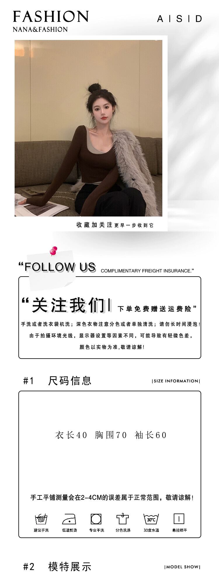 熱い気質偽ツーピース長袖 Tシャツスクエアネックボトリングシャツニッチシックなデザインショートトップ女性初秋 ロング オータム 秋物 スクウェア nana2537177445 | modepoisson