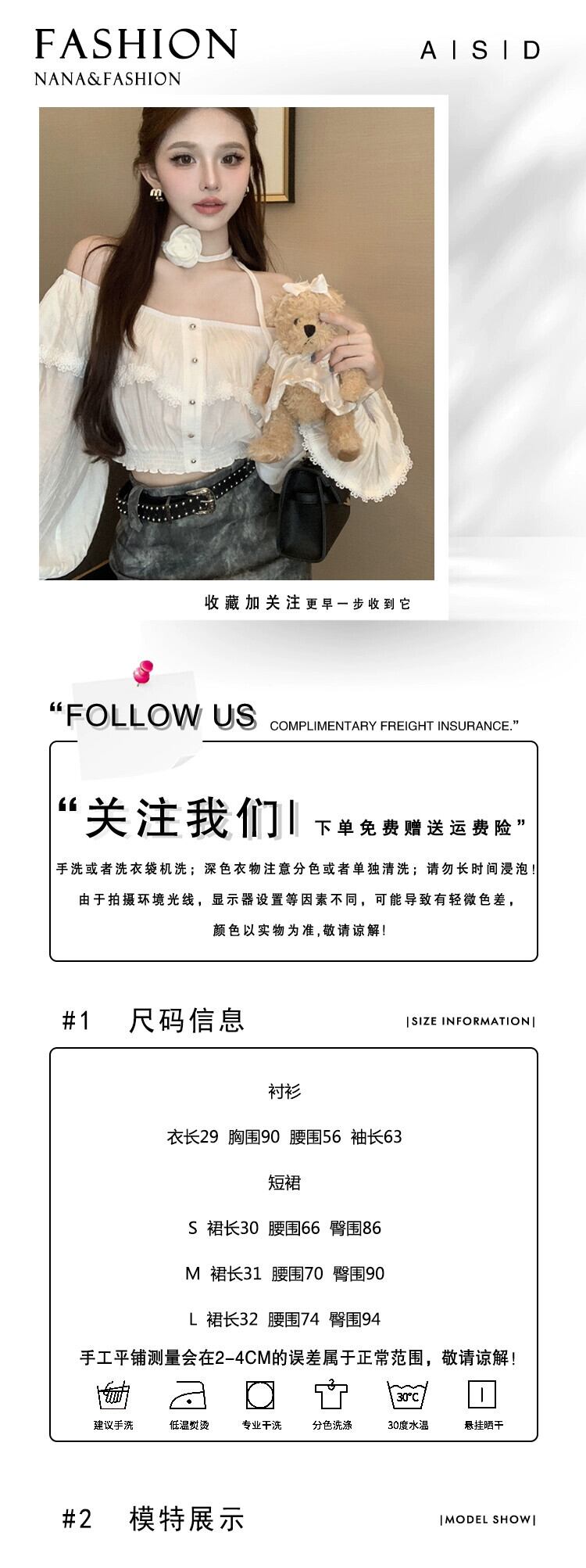 フランスの優しく甘いシャツワンショルダートップ半身ヒップカバーショートスカート初秋2023新しいツーピーススーツ女性 大人ガーリー スウィート キュート カジュアル オータム 秋物 nana78746935818 | modepoisson