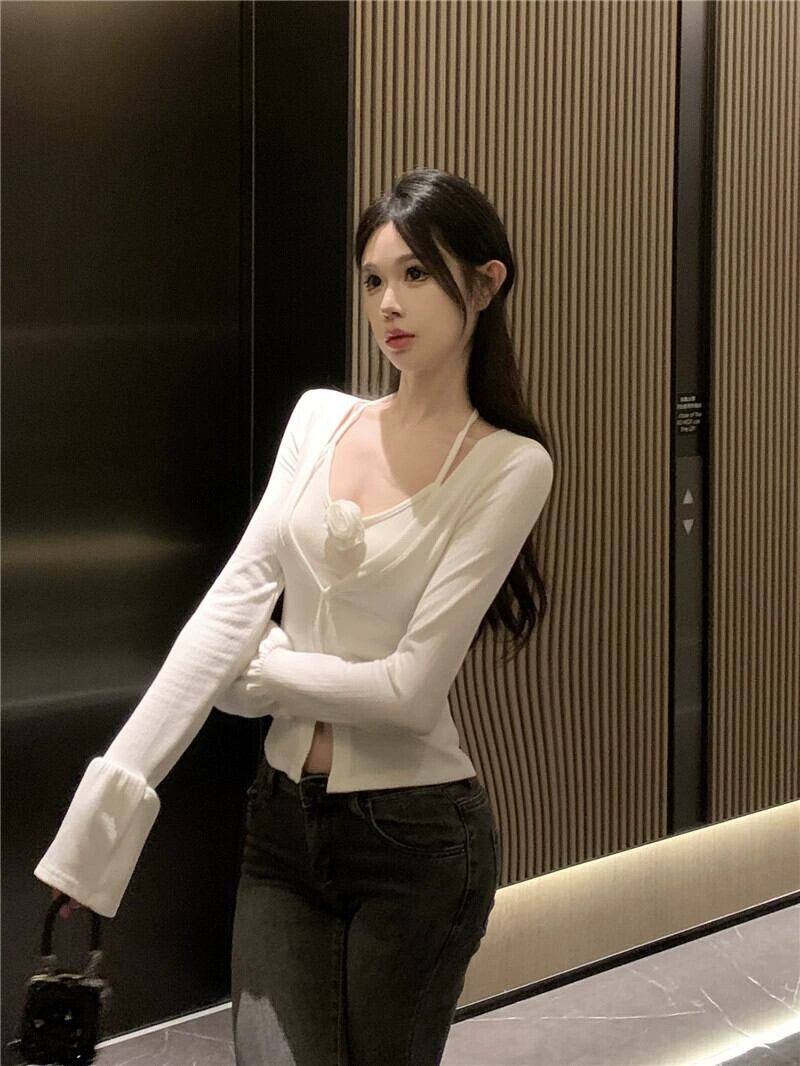個性的なトップス 超美形スーツ 秋カジュアル スリムフィット ホルターネックサスペンダー 長袖カーディガン 2点セット レディース ロング オータム 秋物 nana53772479894 | modepoisson