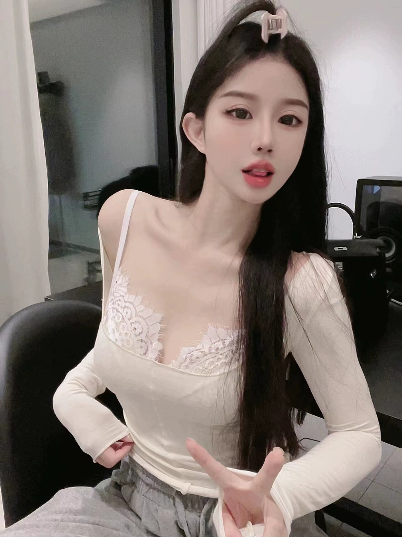 ホット長袖 tシャツニッチレースサスペンダーインナーボトリングシャツユニークなデザイントップ 2023 女性の秋の新スタイル ロング オータム 秋物 nana6432543151 | modepoisson