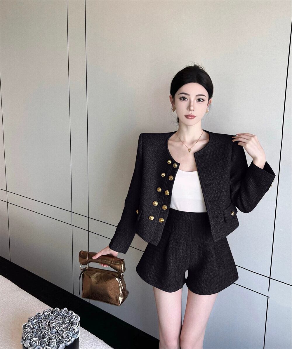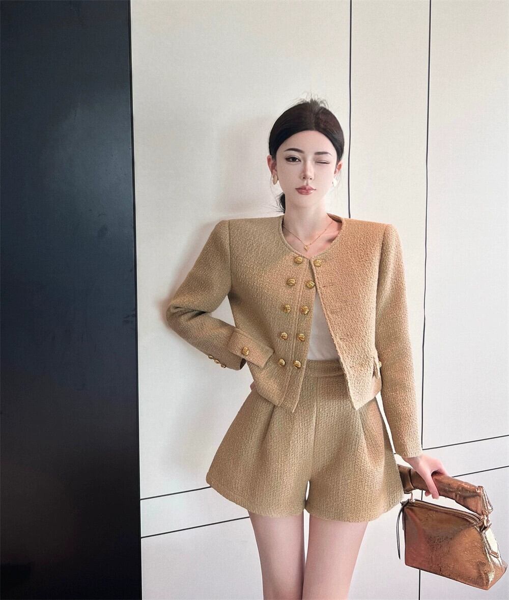 Xiaoxiang スタイルの女性のショートコートハイウエストワイドレッグショーツ 2023 新しいファッションスーツ女性の秋のツーピースセット ハイウェスト オータム 秋物 ブルマー ワイドパンツ nana11260081427 | modepoisson