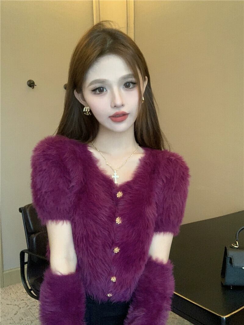 ナナ〜純粋な欲望スタイルのデザインゴールドバックルショートミンクセーター女性の秋と冬の新しい甘くてスパイシーなスタイルのニットカーディガントレンド 大人ガーリー スウィート キュート カジュアル オータム 秋物 ウィンター 冬物 ピュア nana41344641155 | modepoisson