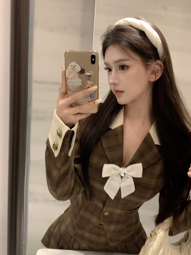 色:チェック柄ジャケット+蝶ネクタイ,チェック柄プリーツスカート