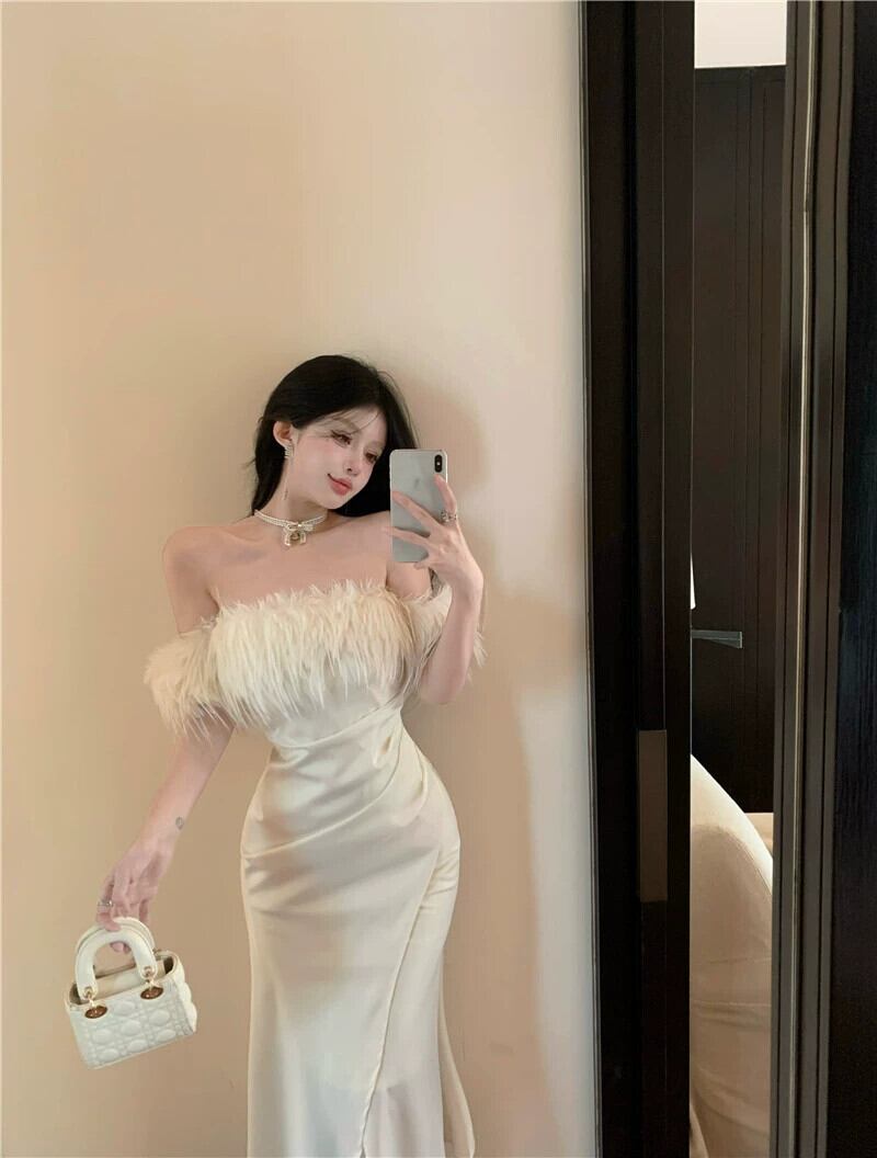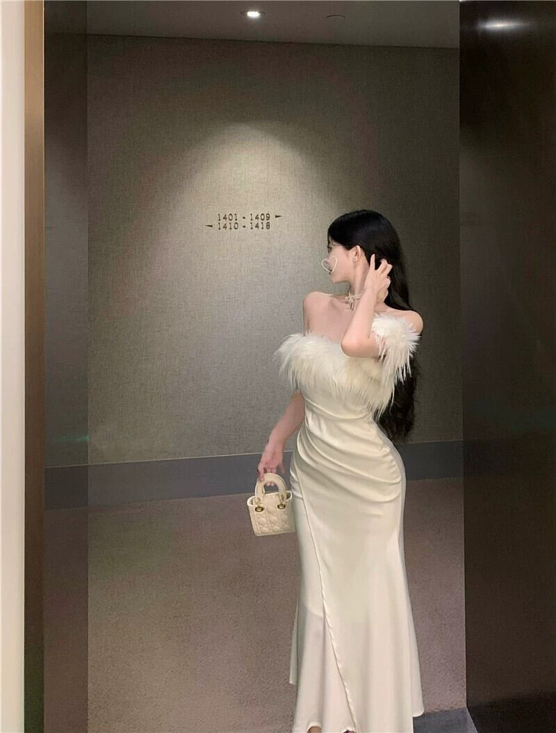 -エンドサテンドレスデザインワンショルダーチューブトップロングスカート2023ファッショナブルなウエストを締める多目的ヒップカバースカートレディース nana57460018585 | modepoisson