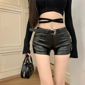 アメカジパンツ レザーパンツ レディース 小さめ スリム 痩身 ヨーロッパ品 2023 新作パンツ 黒 タイト ストレートパンツ ブラック カジュアル ヨーロピアン nana30464686677 | modepoisson
