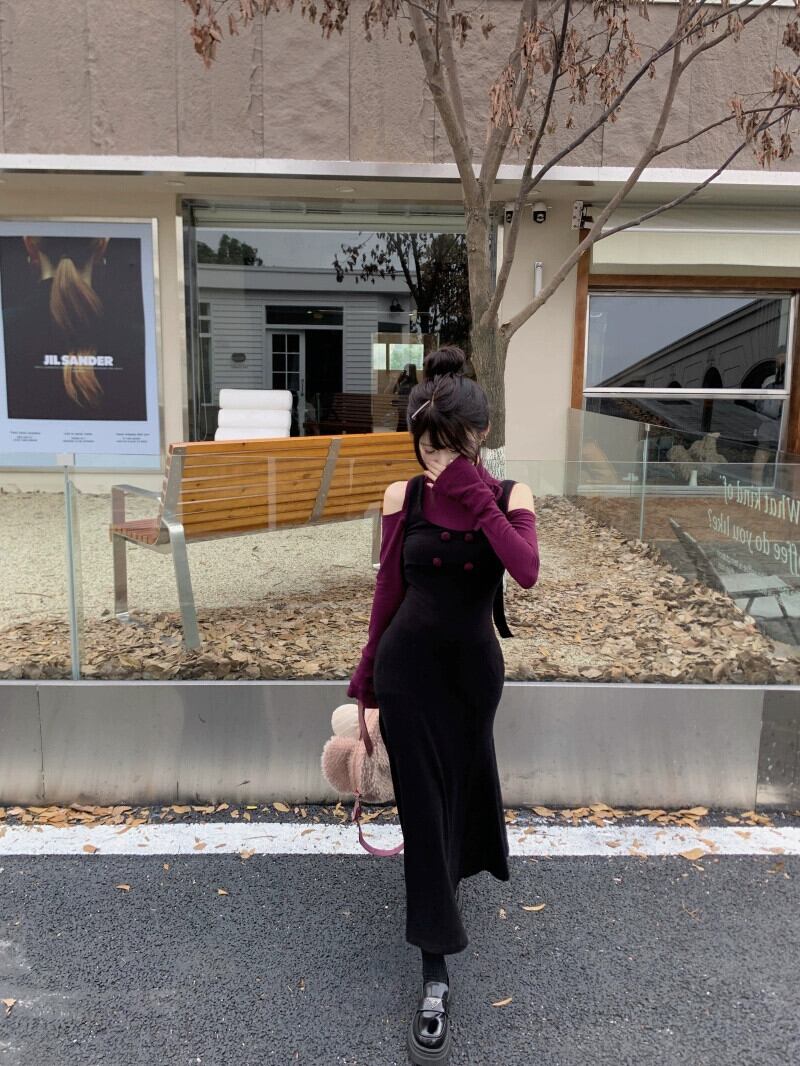 色:ナイトパープルトップ,万能なサスペンダードレス