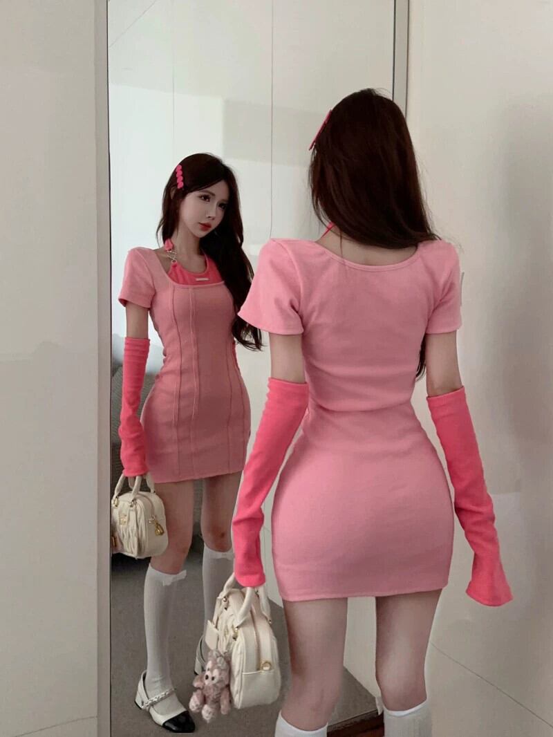 スリムスリム長袖ドレス女性初秋 2023 新ファッションヒップカバースカート甘いフェイクツーピースショートスカート ロング 大人ガーリー スウィート キュート カジュアル オータム 秋物 nana78191079687 | modepoisson