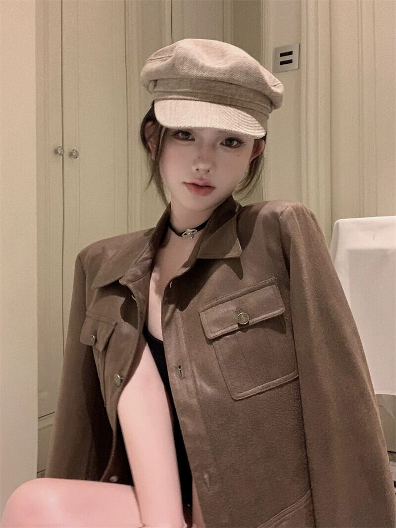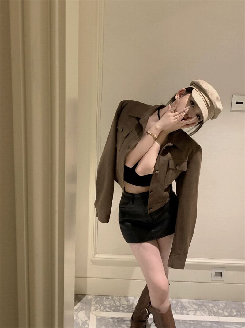 レザージャケット小柄、右肩、万能アメリカンハイストリート長袖ショートトップレディース、2023秋冬新スタイル ロング オータム 秋物 ウィンター 冬物 nana49768666085 | modepoisson