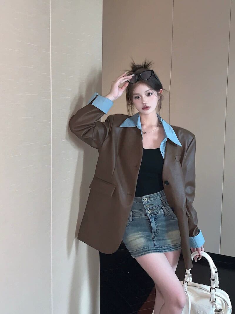 今年の人気のレザージャケットデザインスタイル小さいルーズカジュアルスーツジャケットレディース秋冬2023新スタイル オータム 秋物 ウィンター 冬物 nana53304532342 | modepoisson