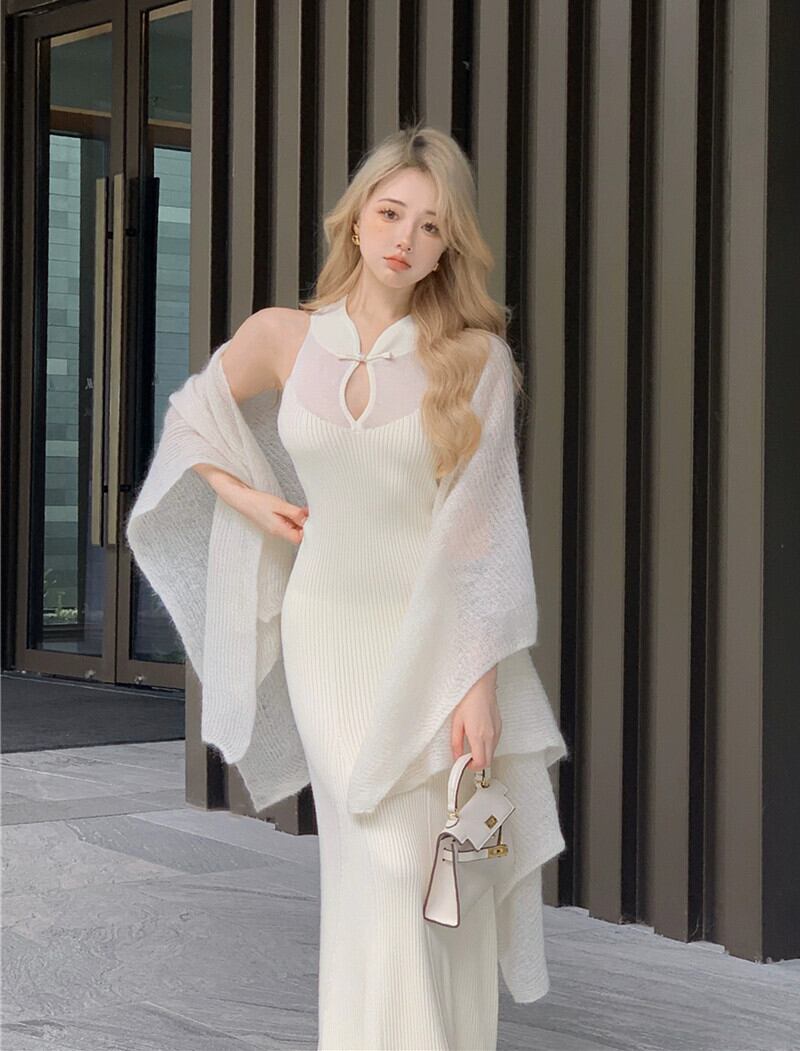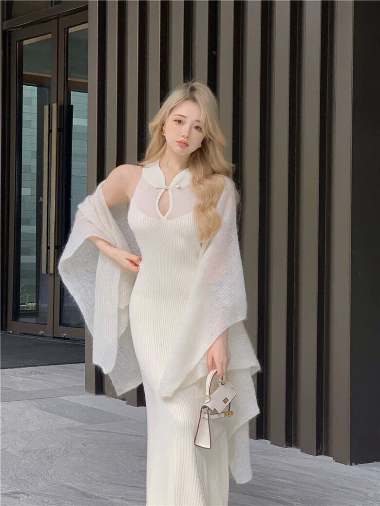 色:オフホワイトのショール,オフホワイトのフィッシュテールドレス