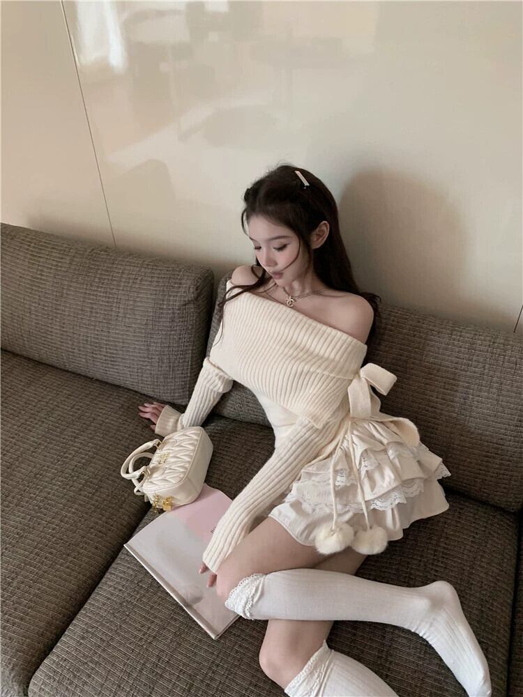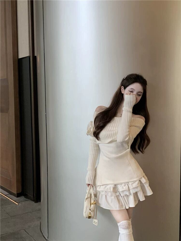 ワンショルダーニットトップとショートスカート、ワンショルダーニットトップとショートスカート、今年一番人気の秋の2点セットレディース オータム 秋物 nana59063748122 | modepoisson